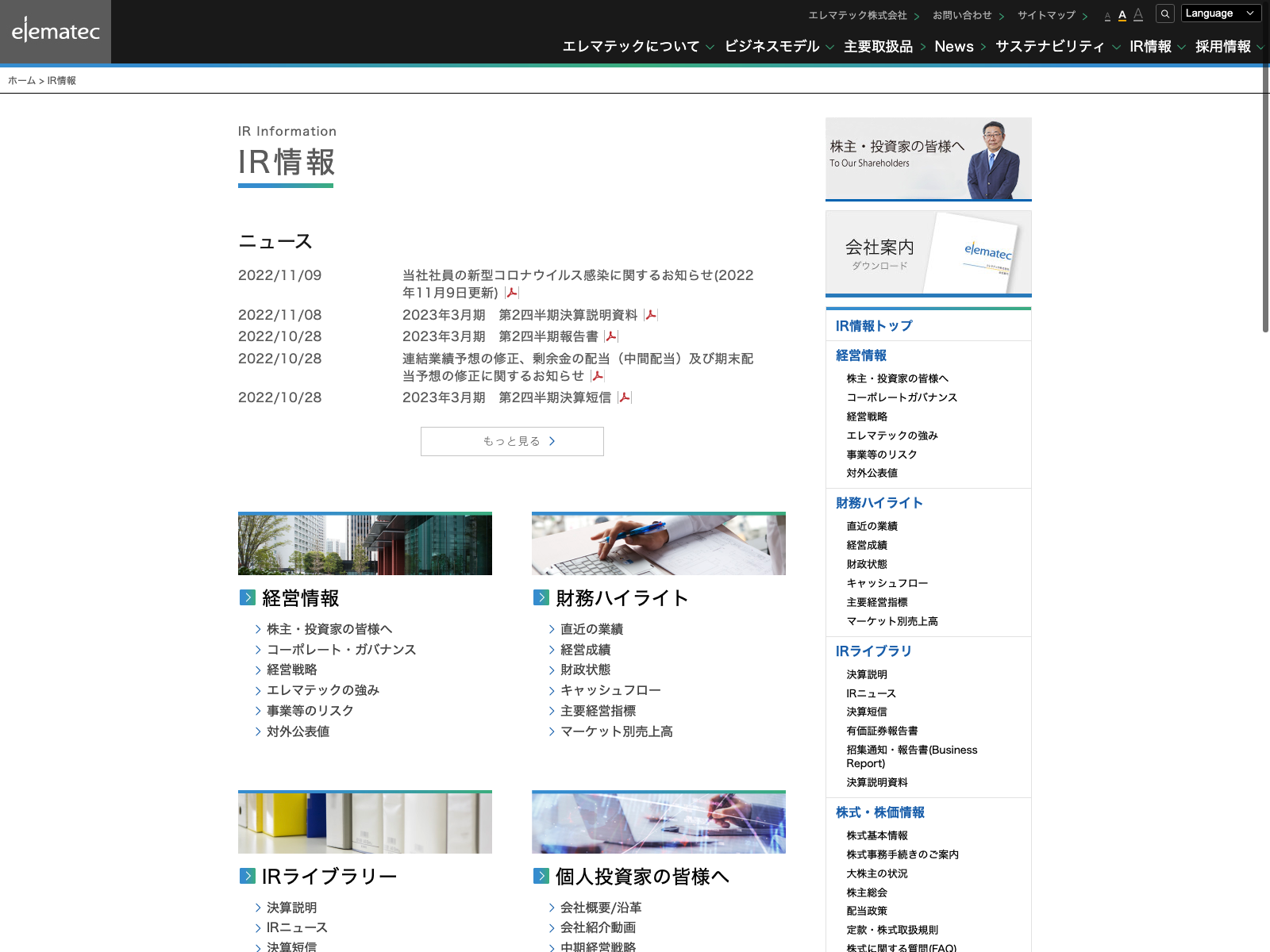 エレマテック Update:2022.10.31 カテゴリー:プライム 卸売業 IR情報 サステナビリティ プライバシーポリシー 免責注意事項 情報セキュリティ 有価証券報告書 経営理念 詳細 Visit 詳細 Visit