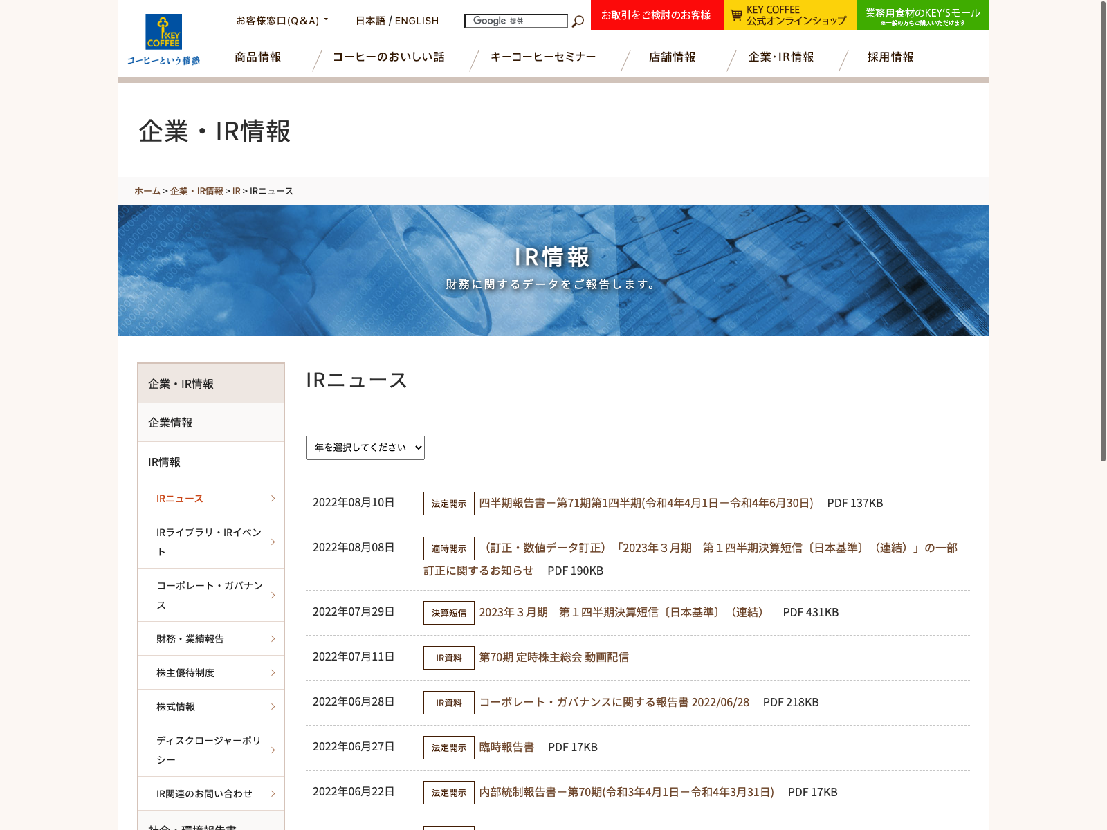 ダイドーグループホールディングス Update:2022.10.31 カテゴリー:プライム 食料品 IR情報 サステナビリティ 免責注意事項 有価証券報告書 経営理念 詳細 Visit 詳細 Visit