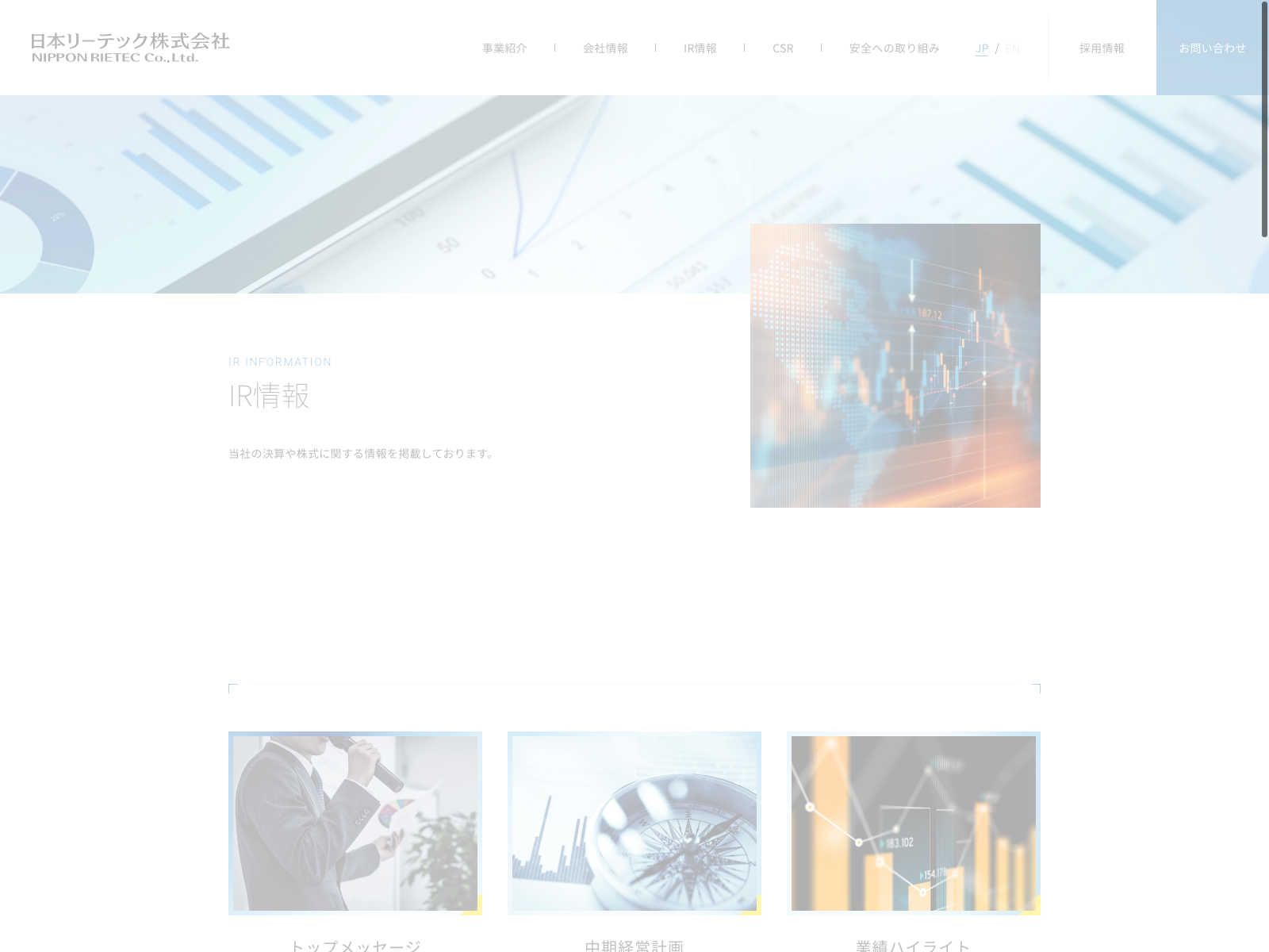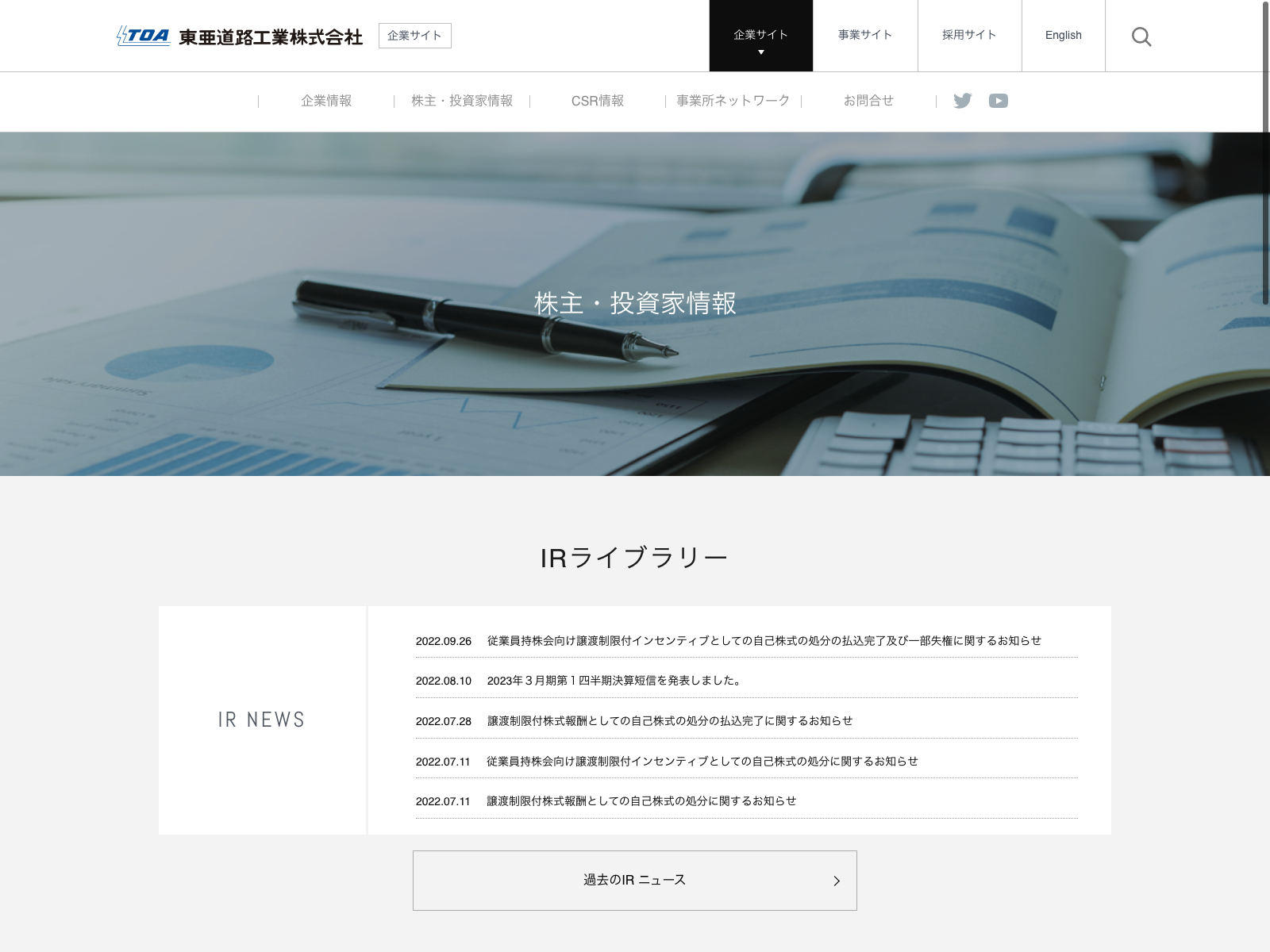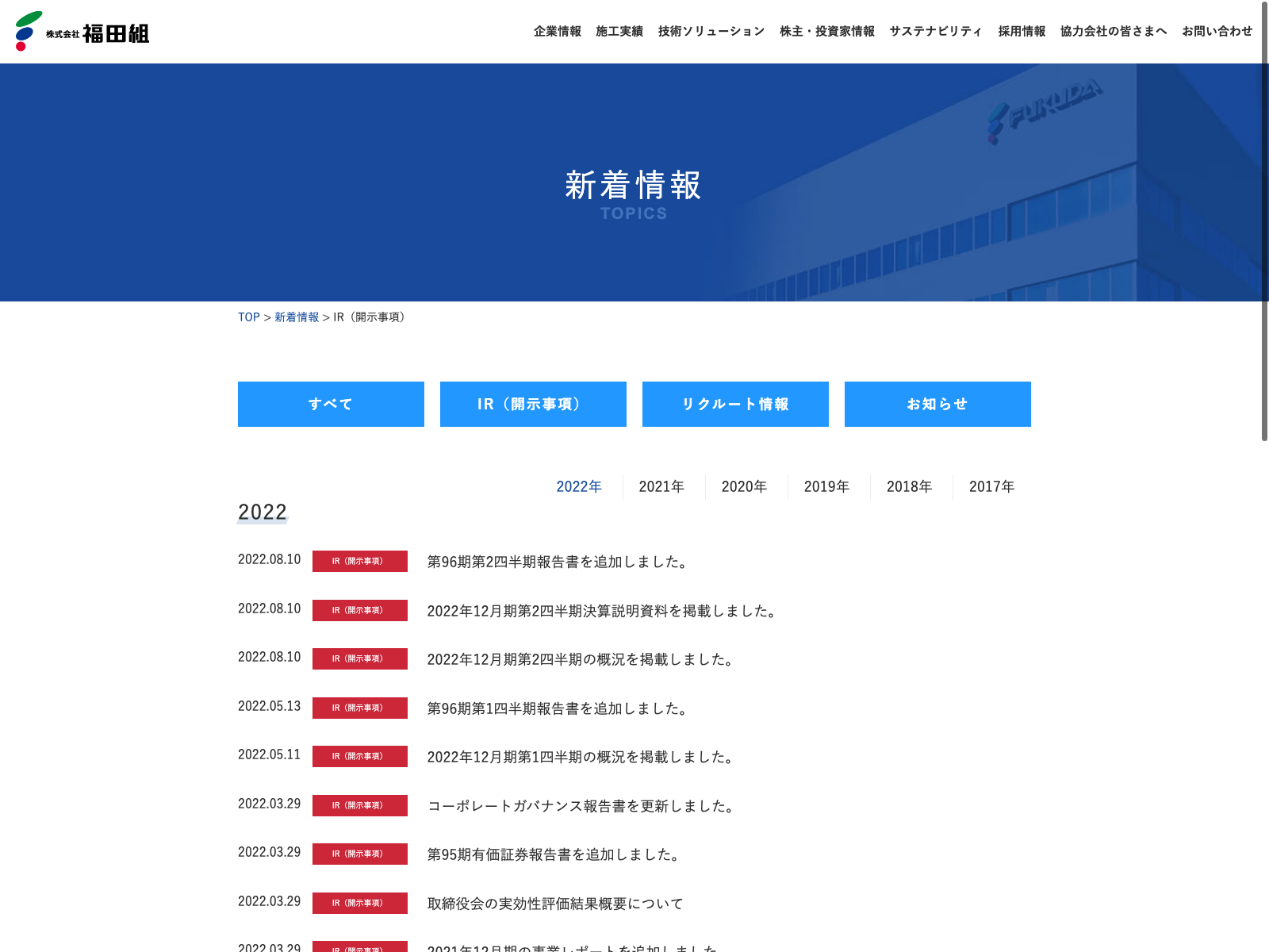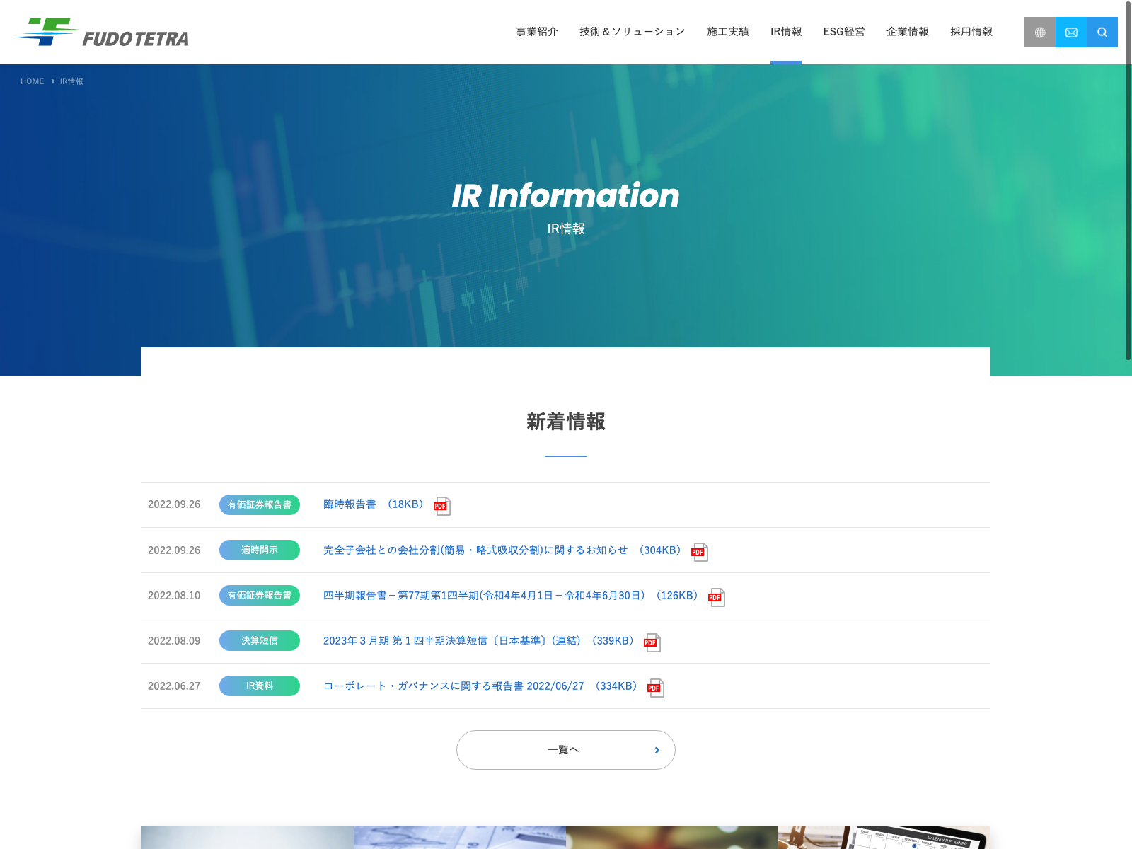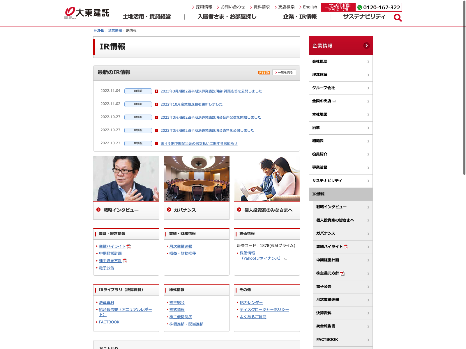 東急建設 Update:2022.10.31 カテゴリー:プライム 建設業 IR情報 コンプライアンス サステナビリティ ニュース一覧 プライバシーポリシー 事業内容 有価証券報告書 社長メッセージ 詳細 Visit 詳細 Visit