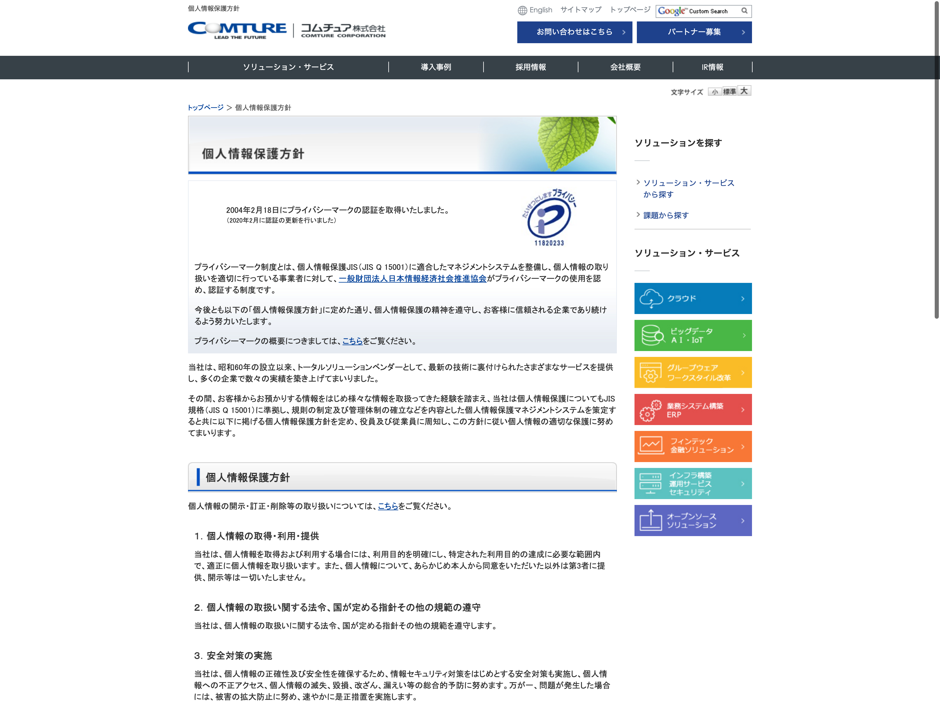システムリサーチ Update:2022.10.31 カテゴリー:プライム 情報・通信業 IR情報 サステナビリティ プライバシーポリシー 事業内容 免責注意事項 情報セキュリティ 沿革 経営理念 詳細 Visit 詳細 Visit