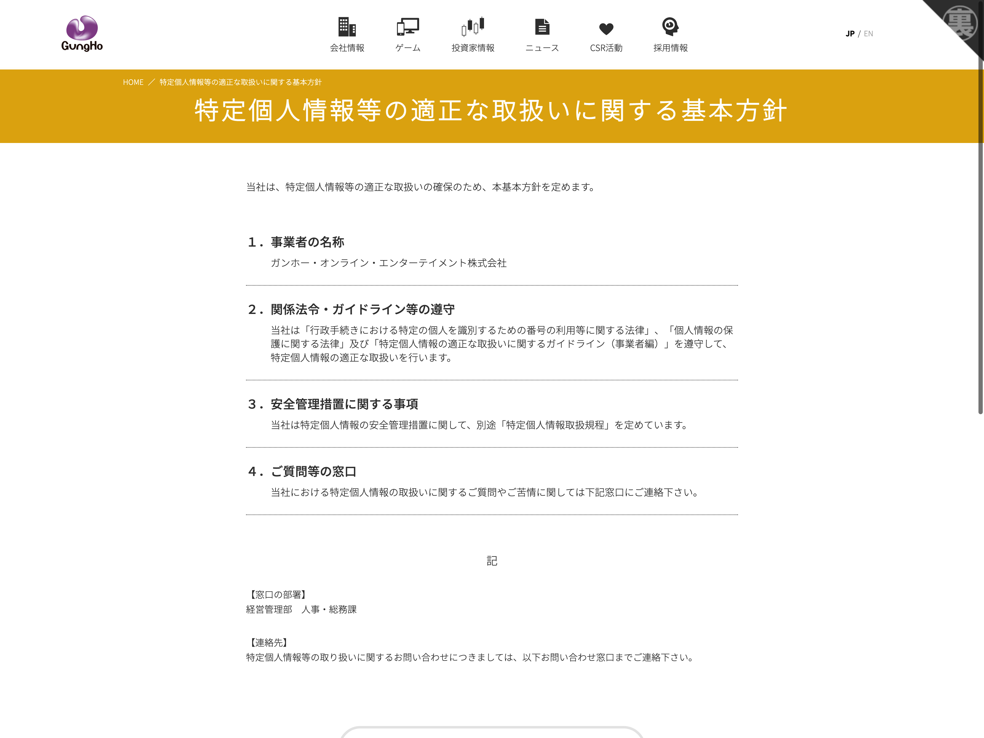 ガンホー・オンライン・エンターテイメント Update:2022.10.31 カテゴリー:プライム 情報・通信業 プライバシーポリシー 有価証券報告書 沿革 社長メッセージ 詳細 Visit 詳細 Visit