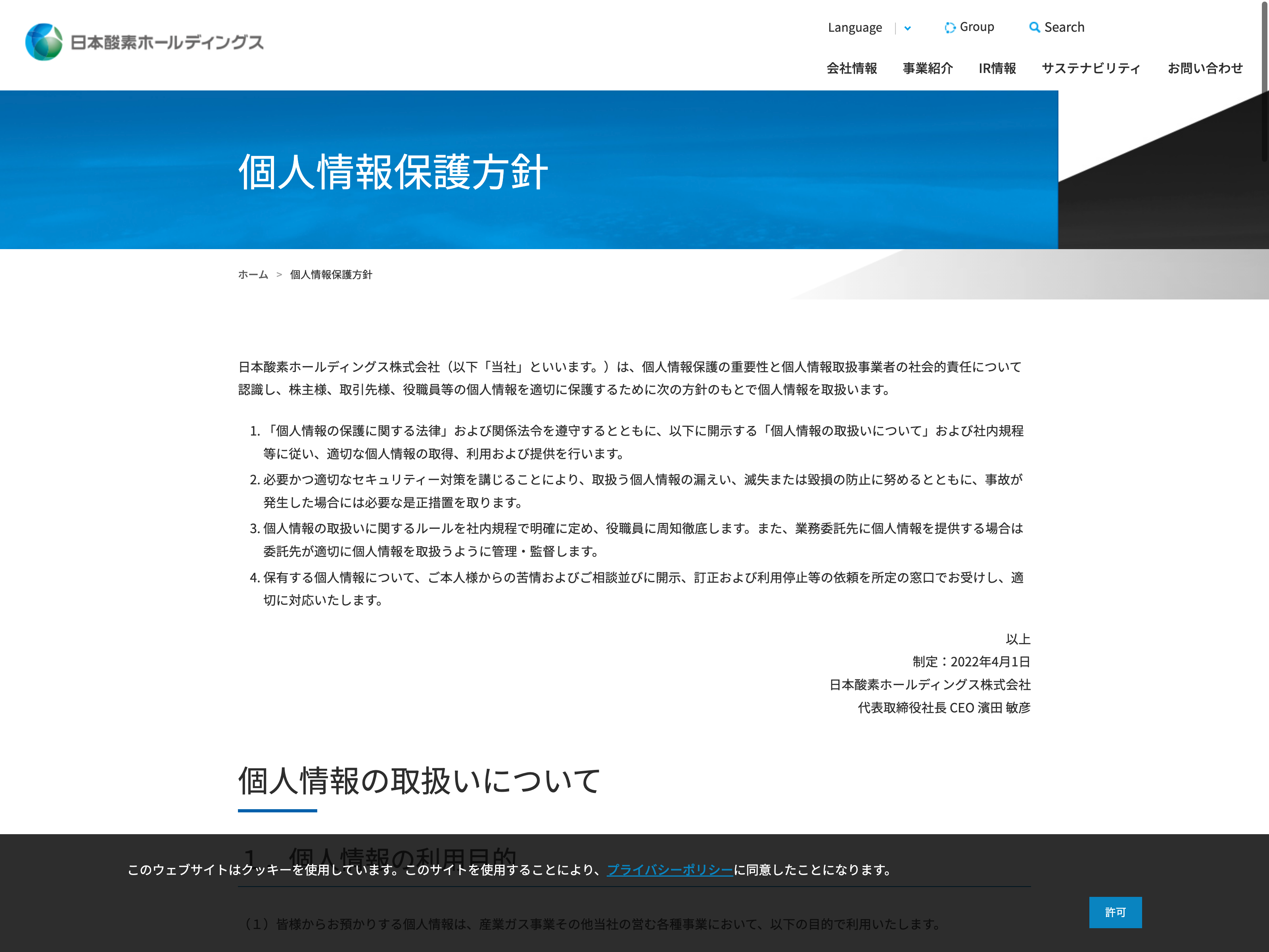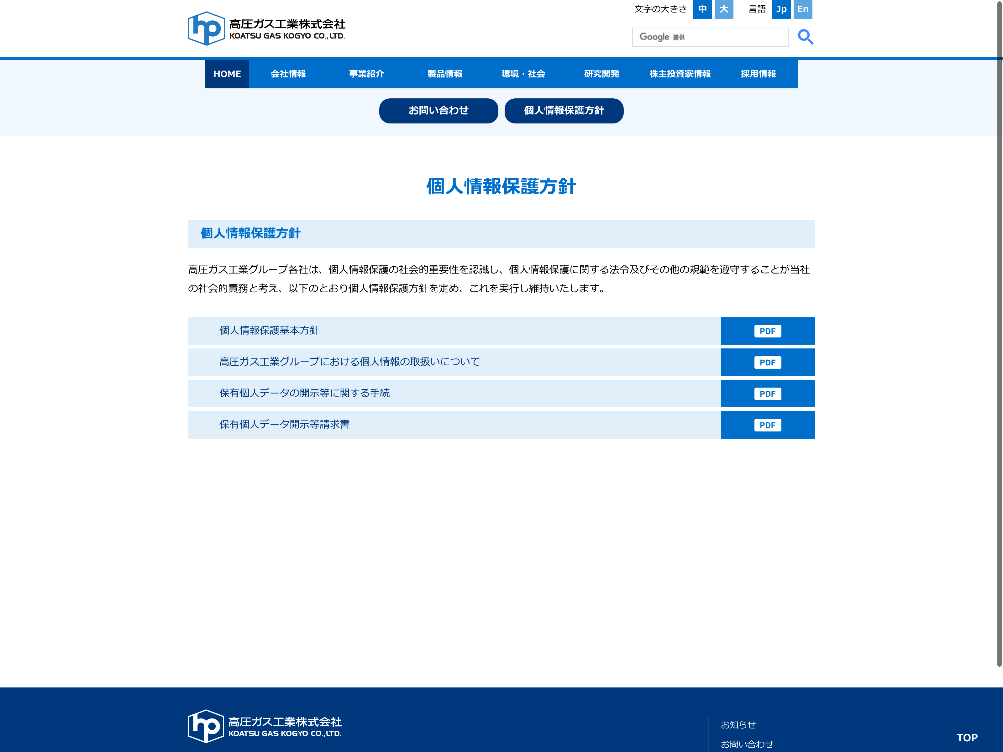 日本酸素ホールディングス Update:2022.10.31 カテゴリー:プライム 化学 サステナビリティ プライバシーポリシー 事業内容 免責注意事項 有価証券報告書 社長メッセージ 詳細 Visit 詳細 Visit