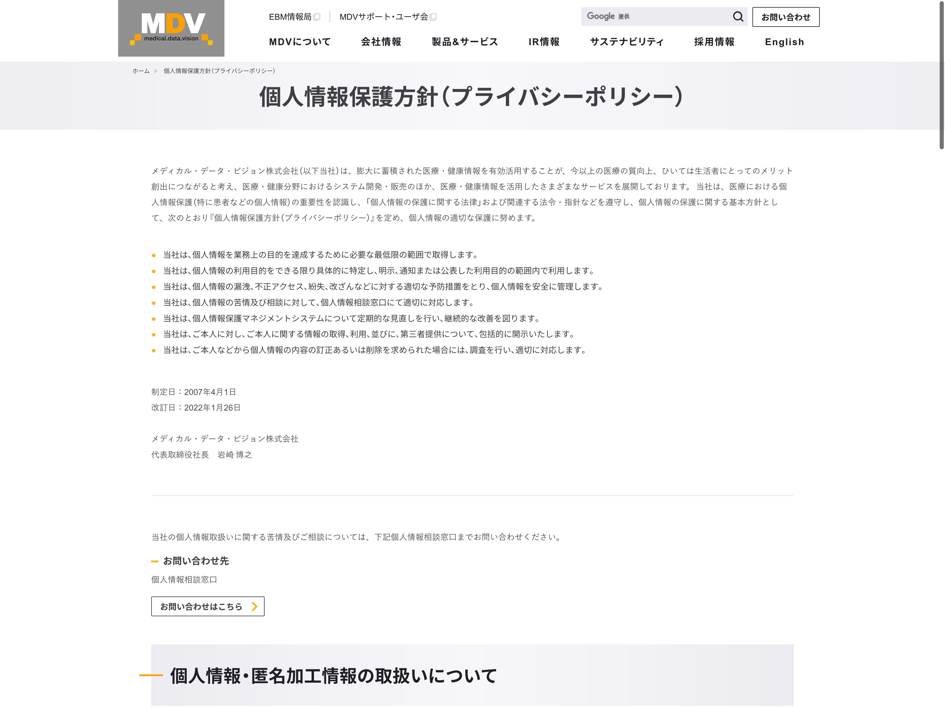 メディカル・データ・ビジョン Update:2022.10.31 カテゴリー:プライム 情報・通信業 サステナビリティ ニュース一覧 プライバシーポリシー 事業内容 免責注意事項 情報セキュリティ 有価証券報告書 詳細 Visit 詳細 Visit