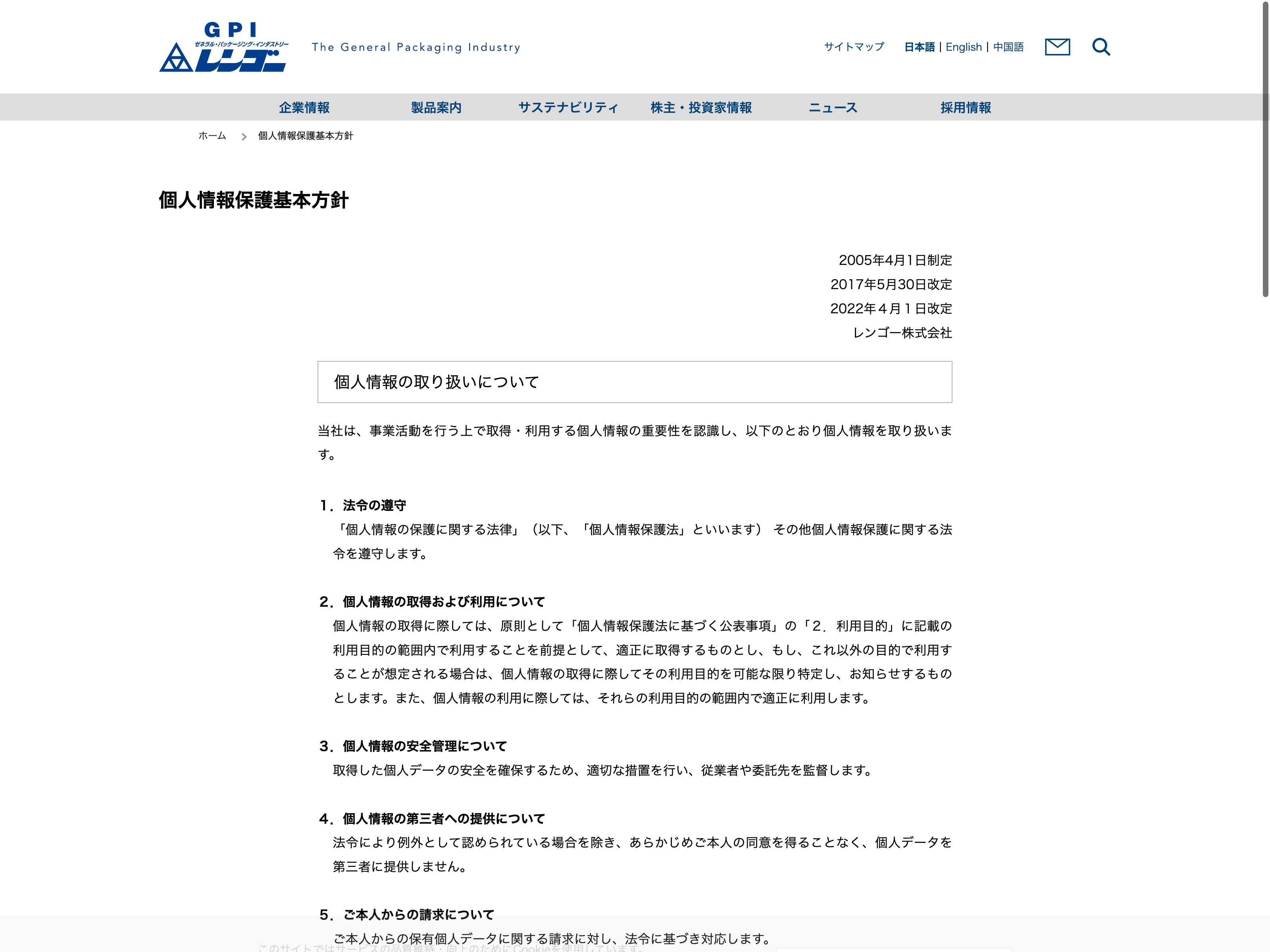 レンゴー Update:2022.10.31 カテゴリー:プライム パルプ・紙 コンプライアンス サステナビリティ ニュース一覧 プライバシーポリシー 有価証券報告書 沿革 社長メッセージ 経営理念 詳細 Visit 詳細 Visit
