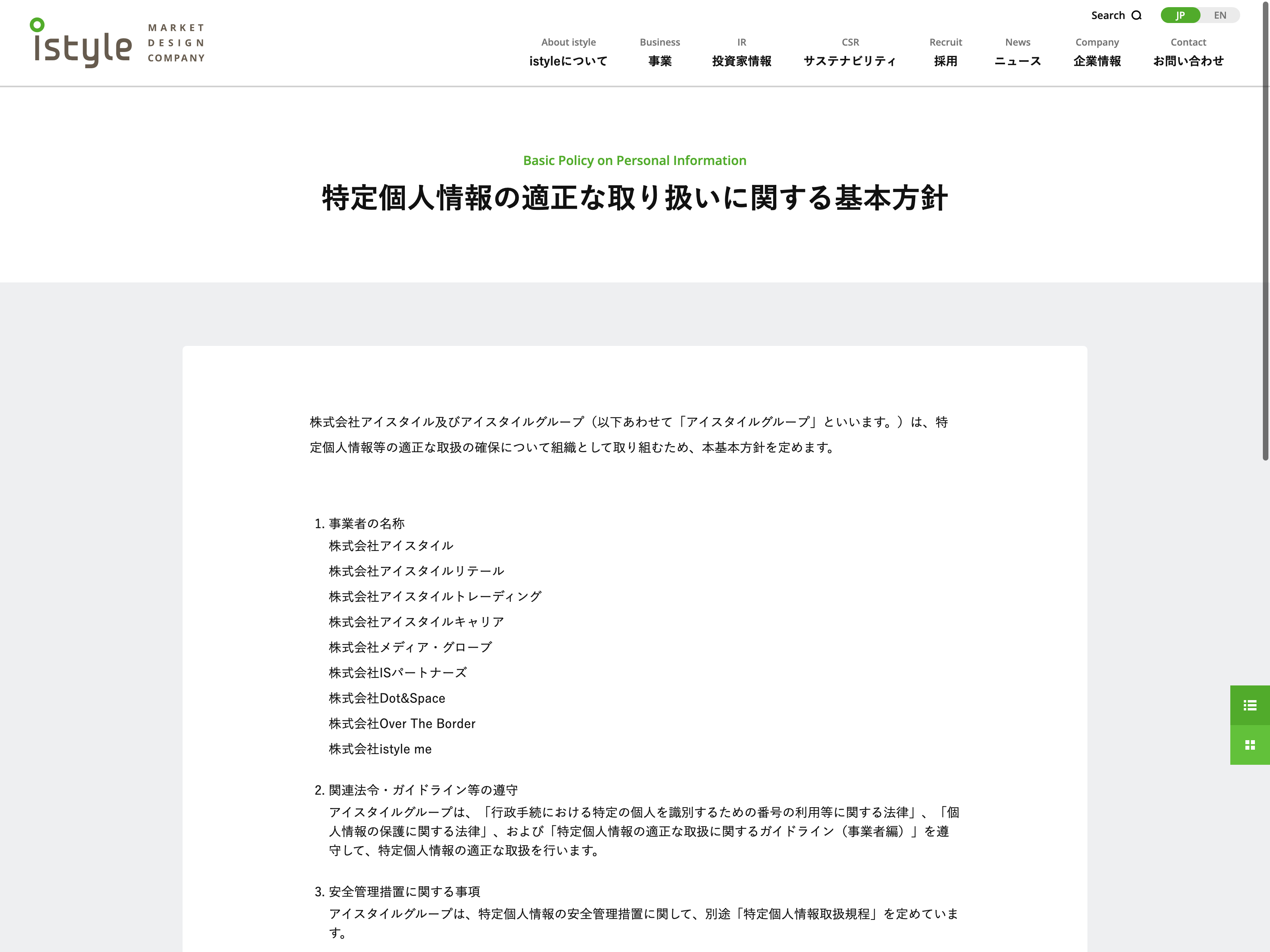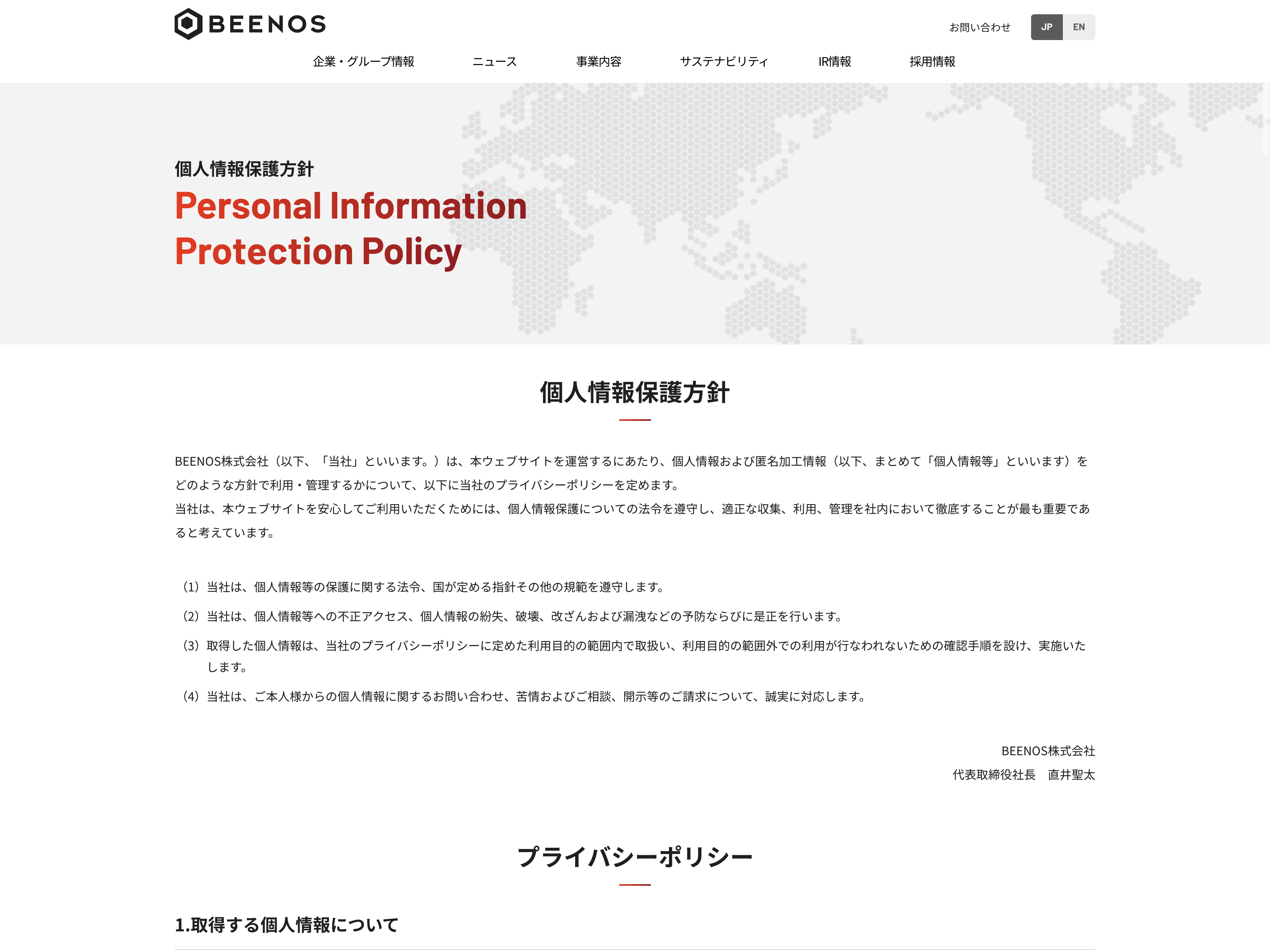BEENOS Update:2022.10.31 カテゴリー:プライム 小売業 サステナビリティ ビジョン プライバシーポリシー 事業内容 免責注意事項 情報セキュリティ 沿革 詳細 Visit 詳細 Visit