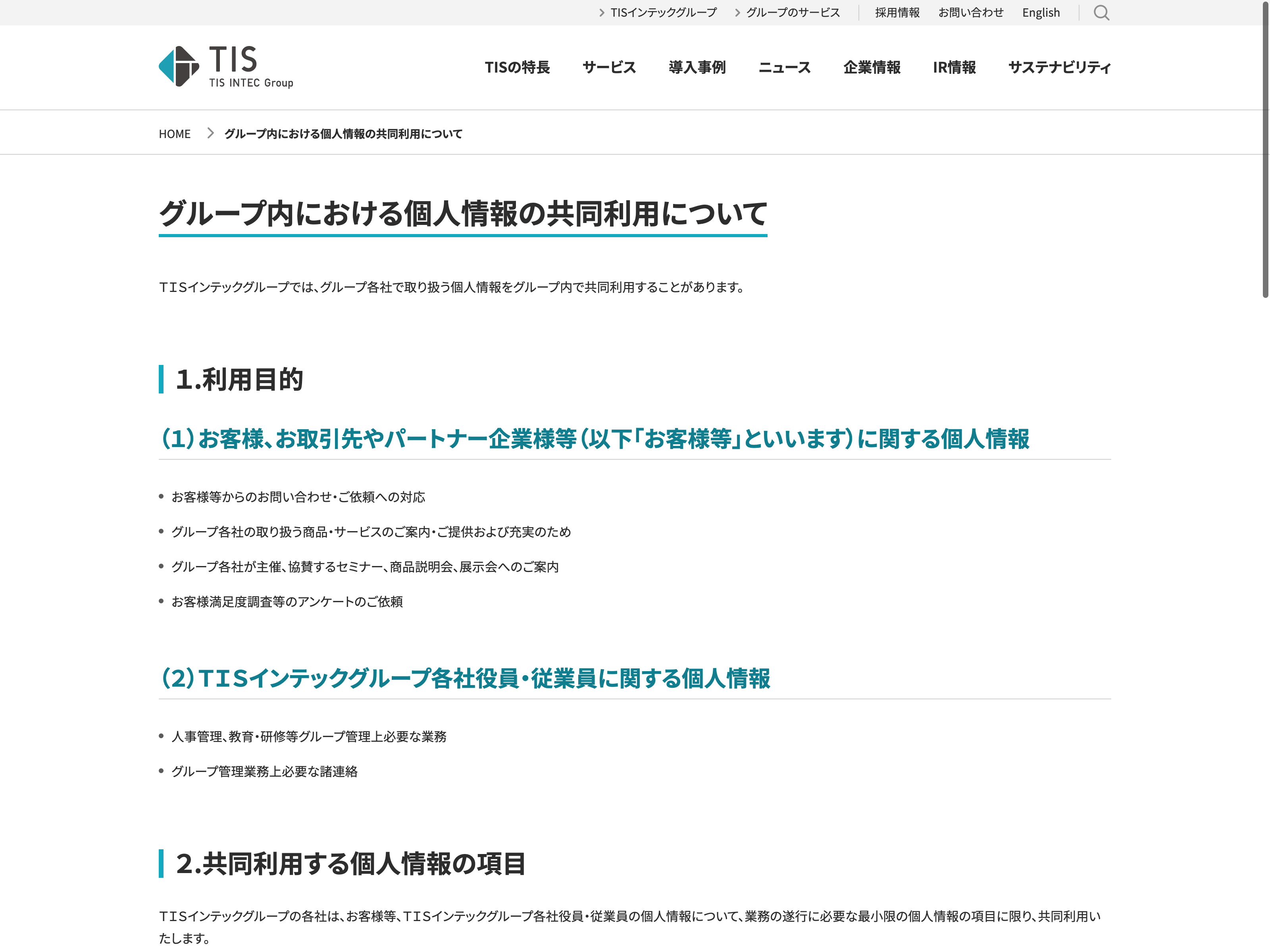 TIS Update:2022.10.31 カテゴリー:プライム 情報・通信業 コンプライアンス サステナビリティ プライバシーポリシー 事業内容 情報セキュリティ 沿革 詳細 Visit 詳細 Visit