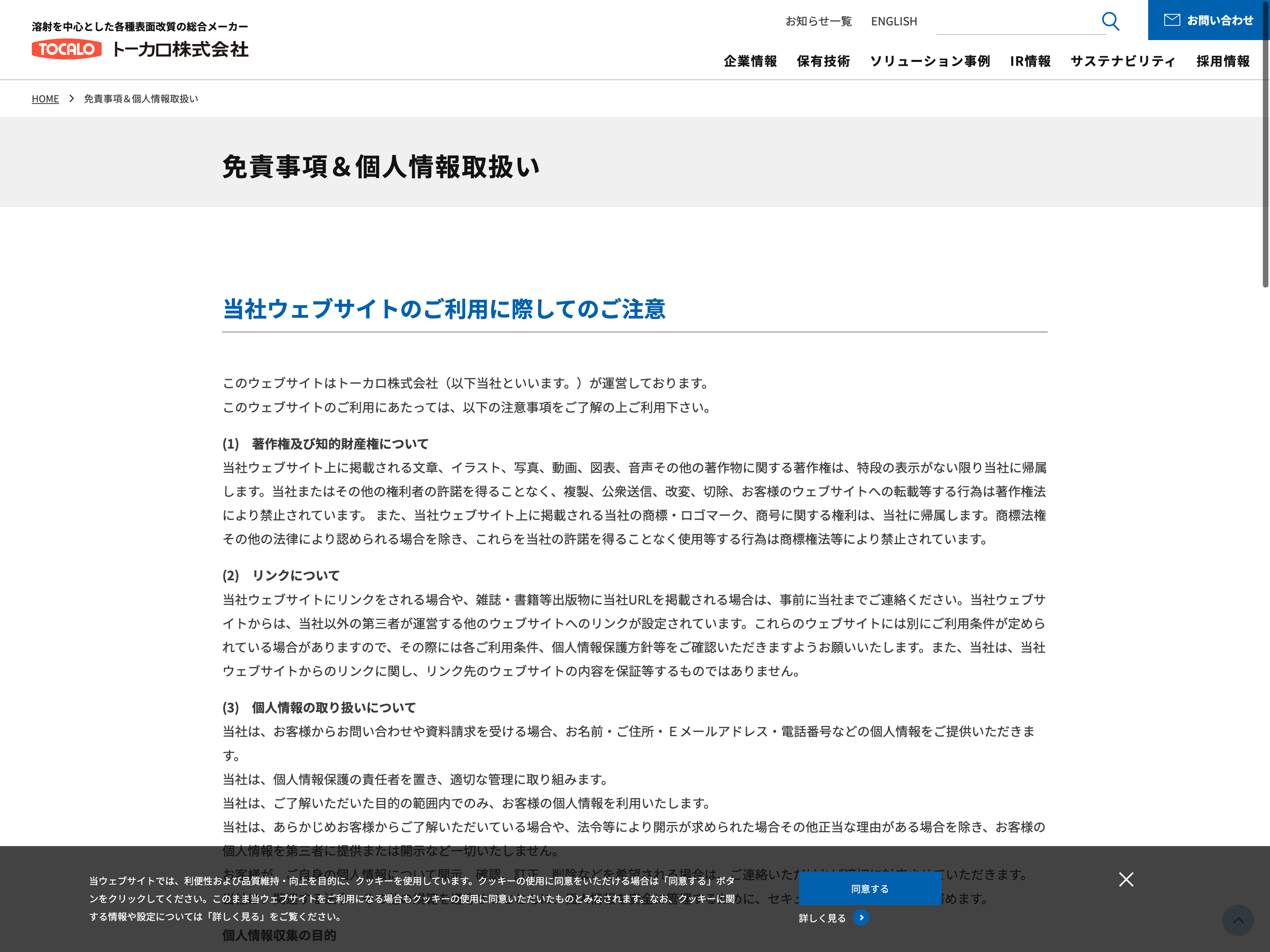 トーカロ Update:2022.10.31 カテゴリー:プライム 金属製品 コンプライアンス サステナビリティ ニュース一覧 プライバシーポリシー 免責注意事項 有価証券報告書 沿革 詳細 Visit 詳細 Visit