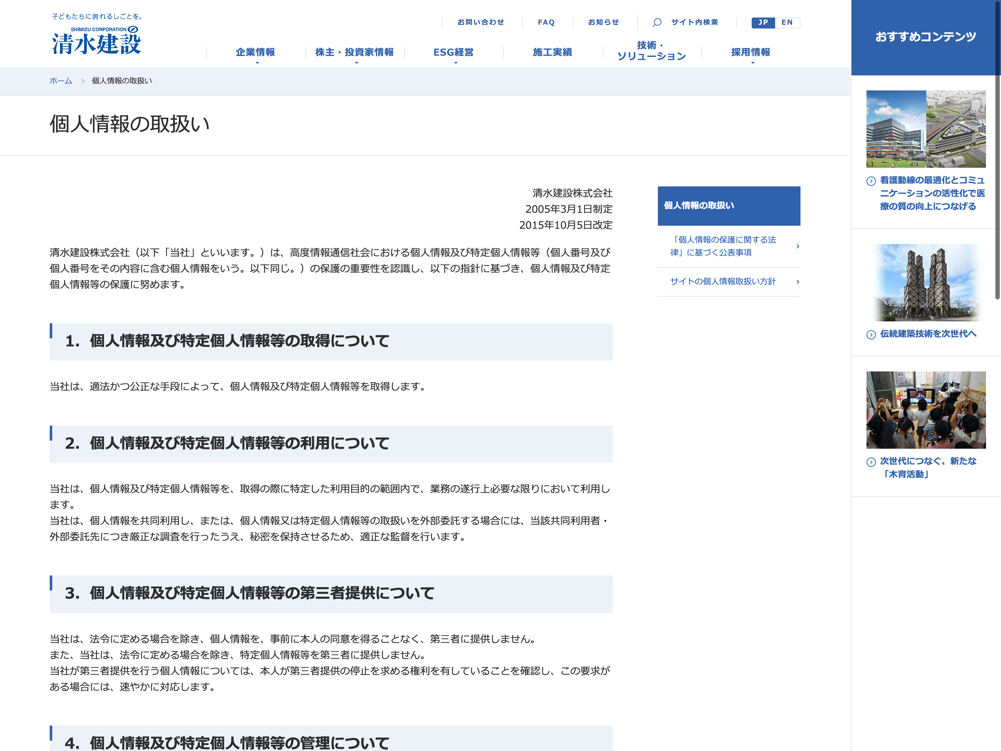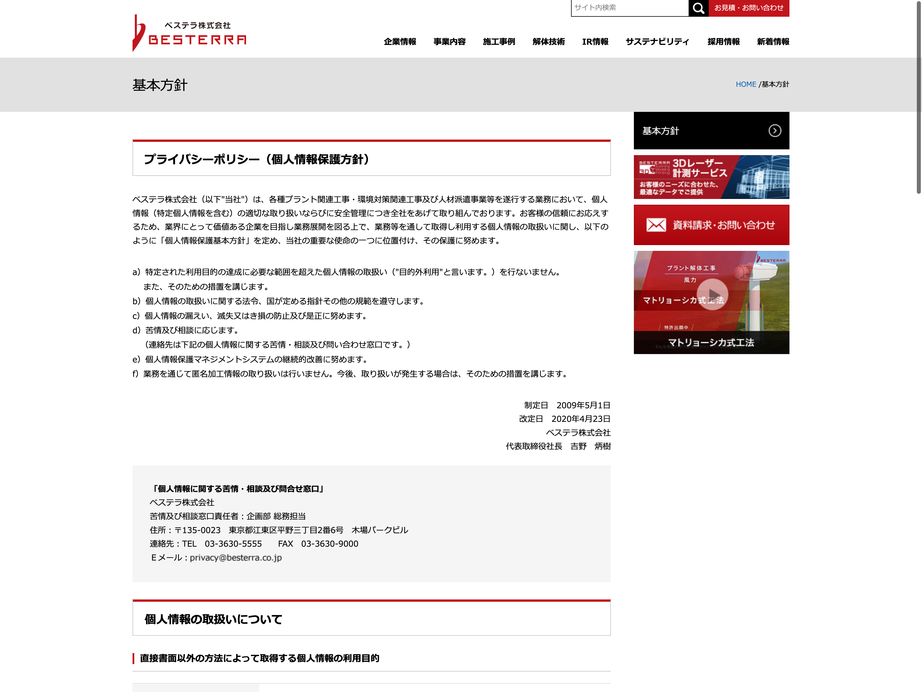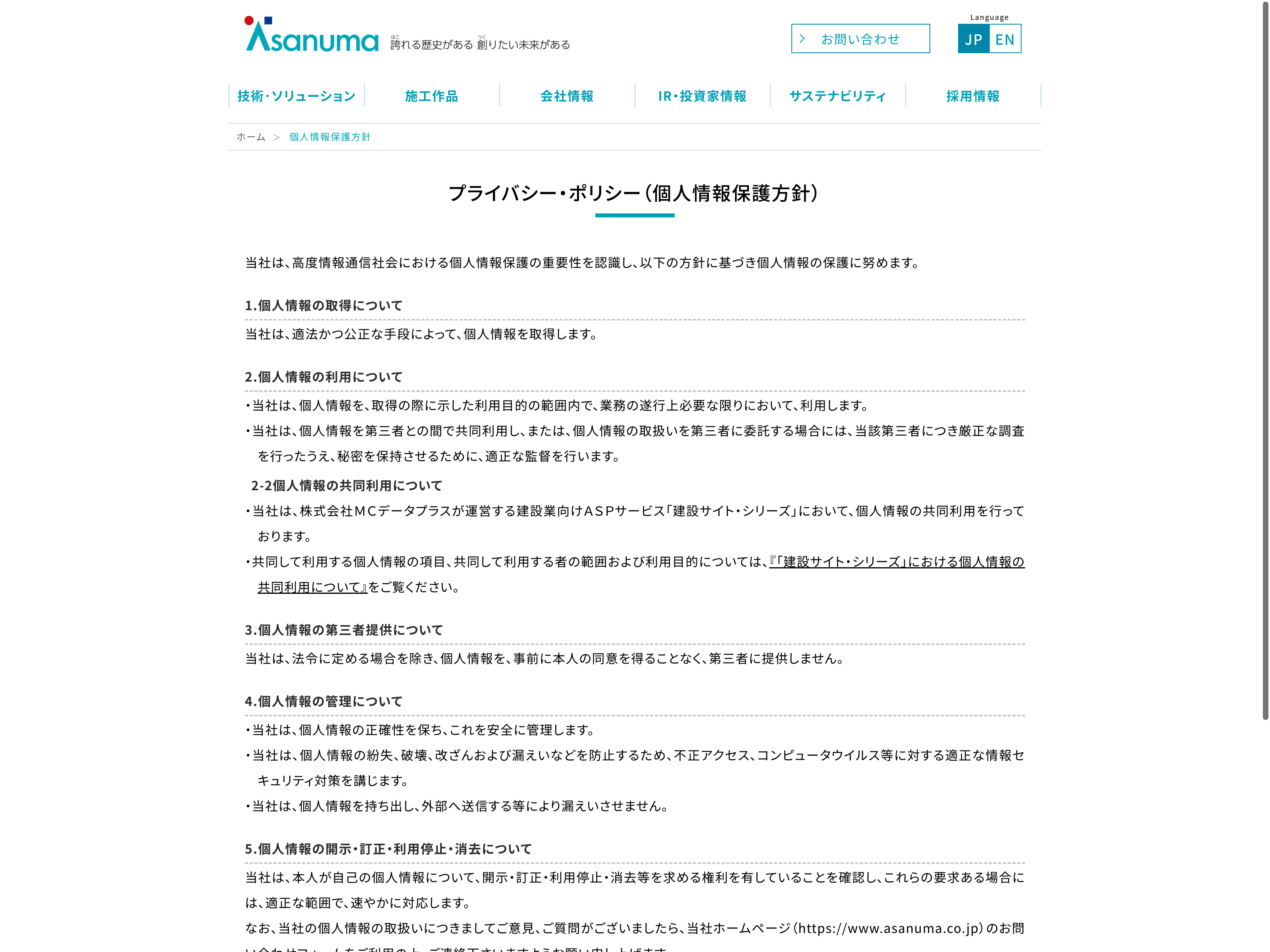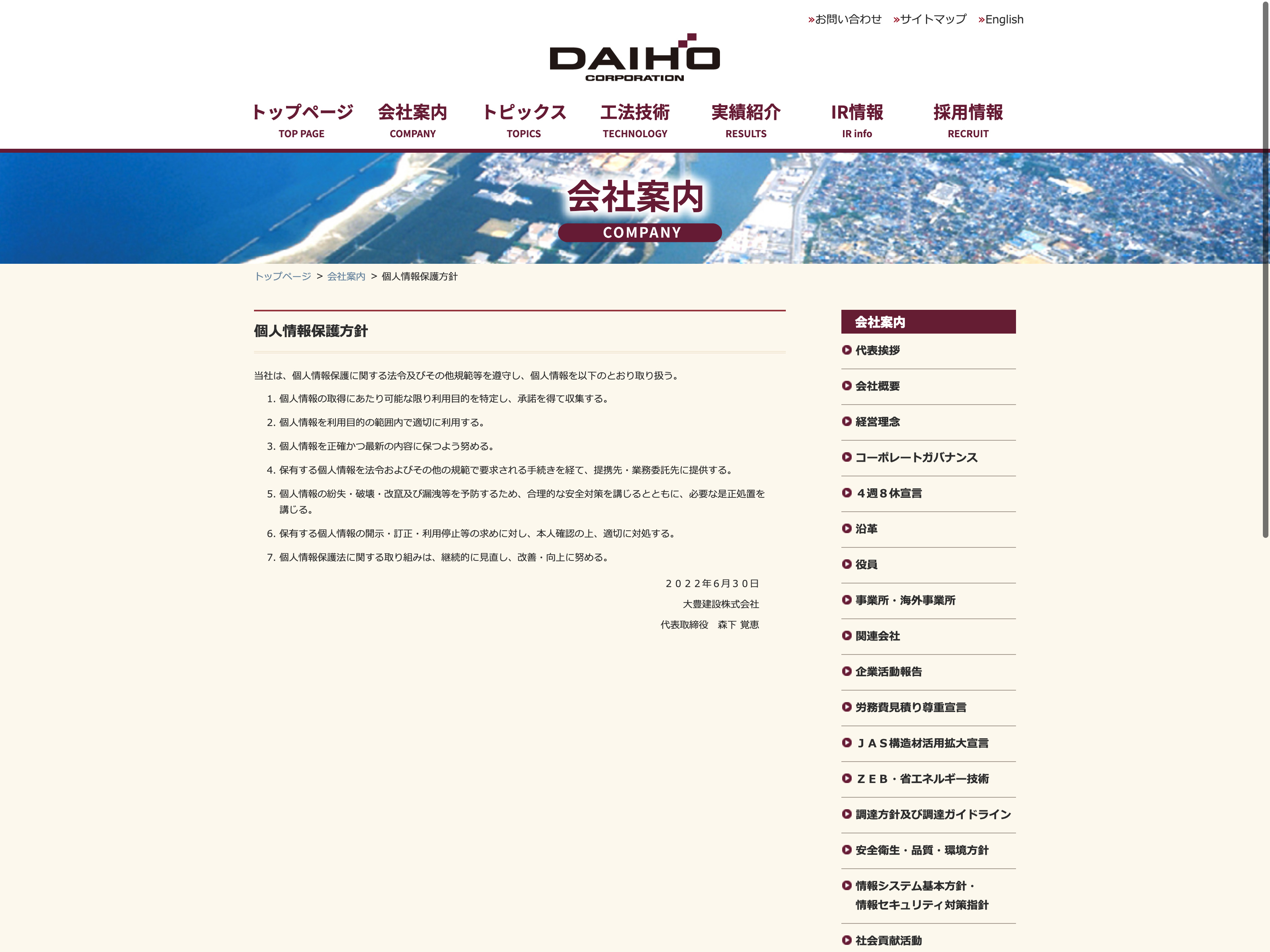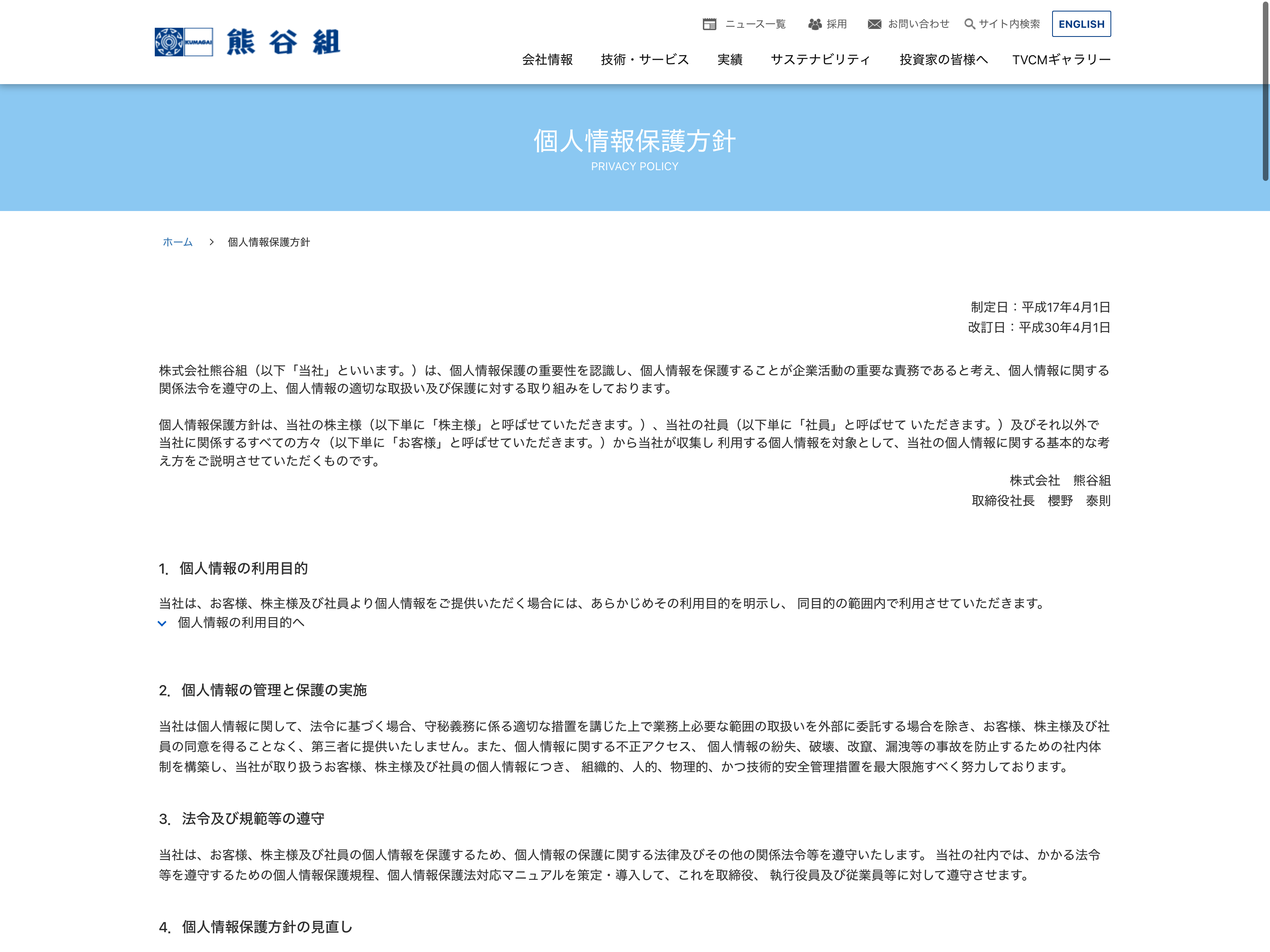 熊谷組 Update:2022.10.31 カテゴリー:プライム 建設業 IR情報 サステナビリティ ニュース一覧 ビジョン プライバシーポリシー 沿革 社長メッセージ 経営理念 詳細 Visit 詳細 Visit