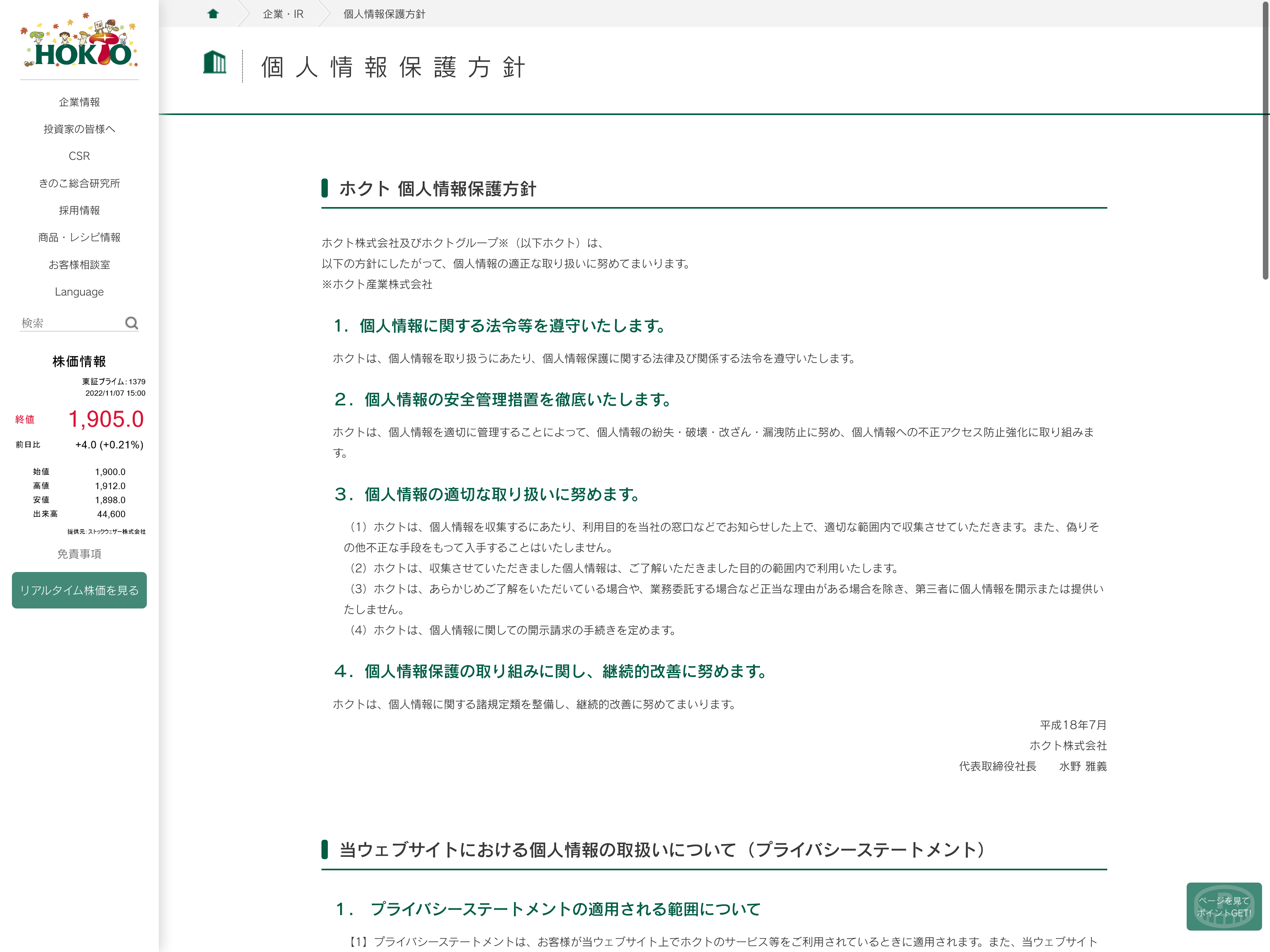 雪国まいたけ Update:2022.10.31 カテゴリー:プライム 水産・農林業 IR情報 サステナビリティ プライバシーポリシー 沿革 社長メッセージ 経営理念 詳細 Visit 詳細 Visit