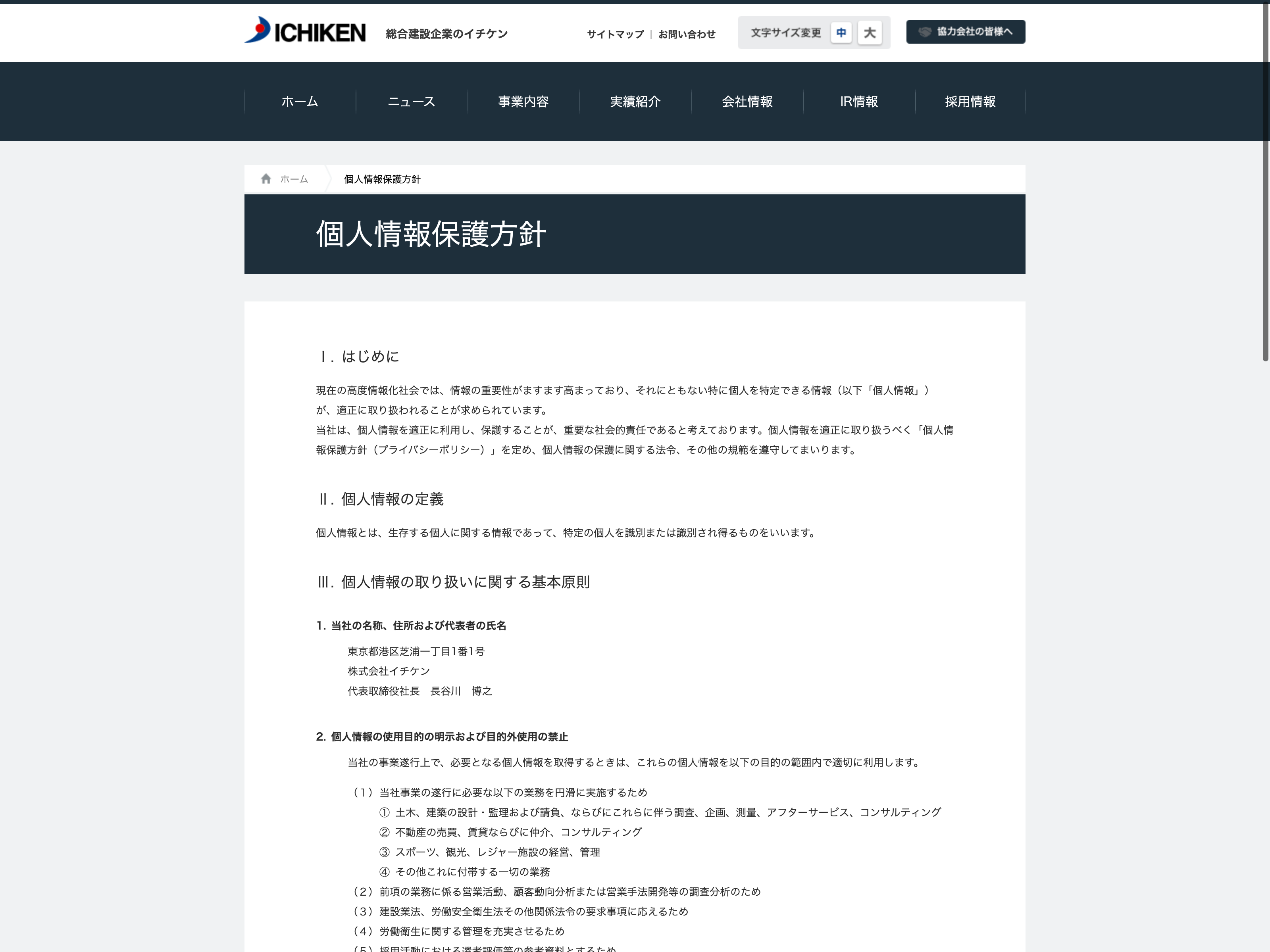 イチケン Update:2022.10.31 カテゴリー:プライム 建設業 IR情報 コンプライアンス ニュース一覧 プライバシーポリシー 事業内容 有価証券報告書 沿革 詳細 Visit 詳細 Visit