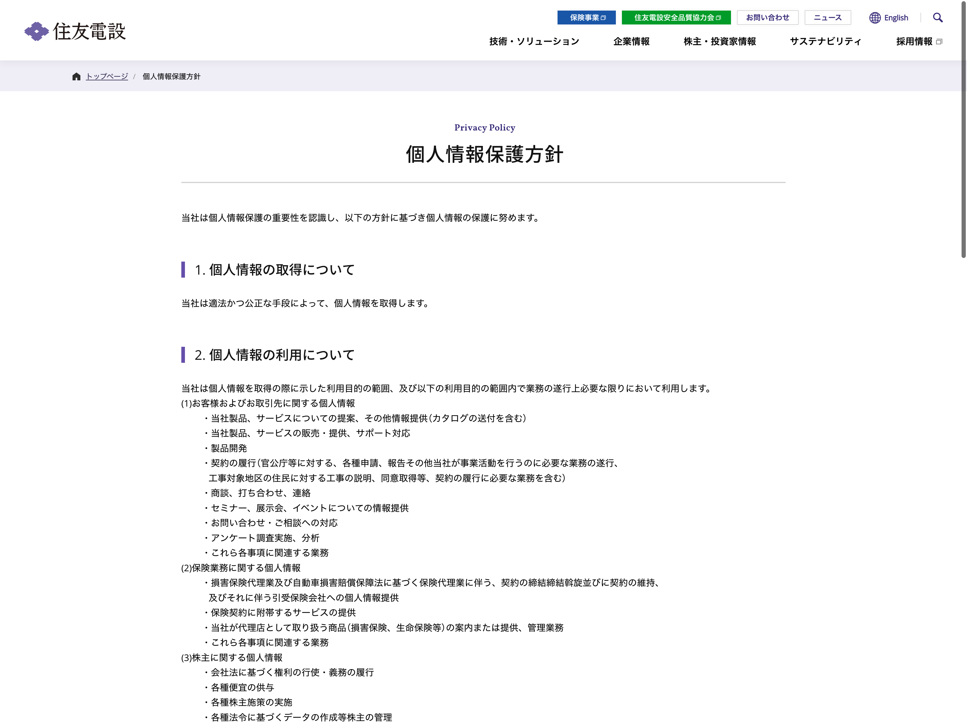 住友電設 Update:2022.10.31 カテゴリー:プライム 建設業 IR情報 サステナビリティ ニュース一覧 プライバシーポリシー 沿革 社長メッセージ 経営理念 詳細 Visit 詳細 Visit