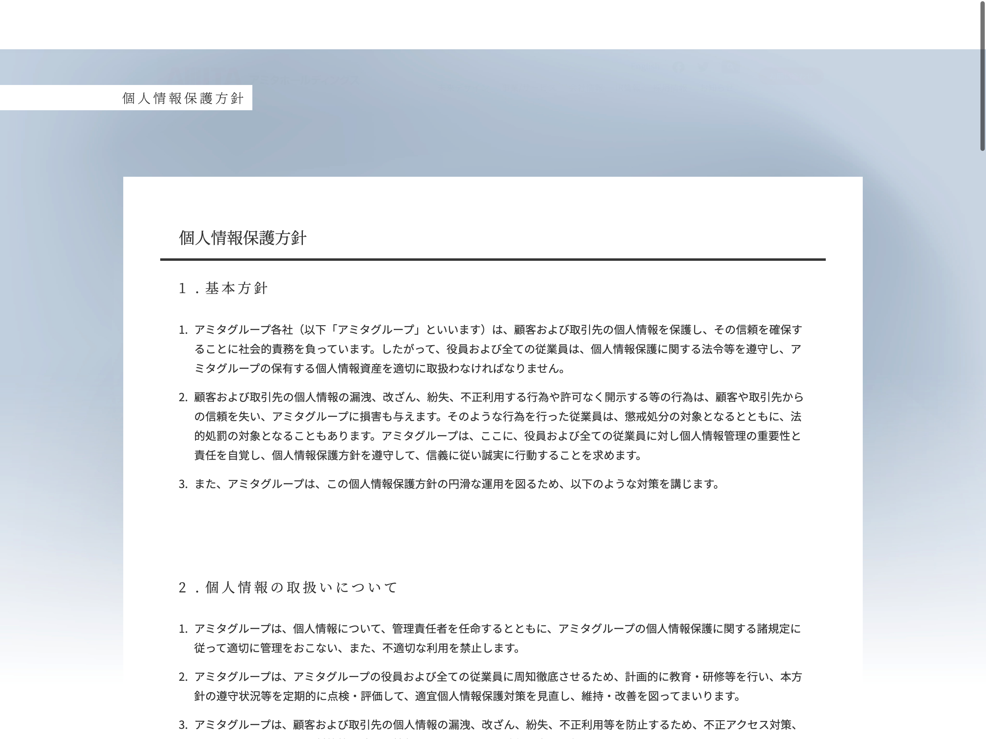 アミタホールディングス Update:2022.10.31 カテゴリー:グロース サービス業 コンプライアンス プライバシーポリシー 情報セキュリティ 有価証券報告書 沿革 社長メッセージ 詳細 Visit 詳細 Visit
