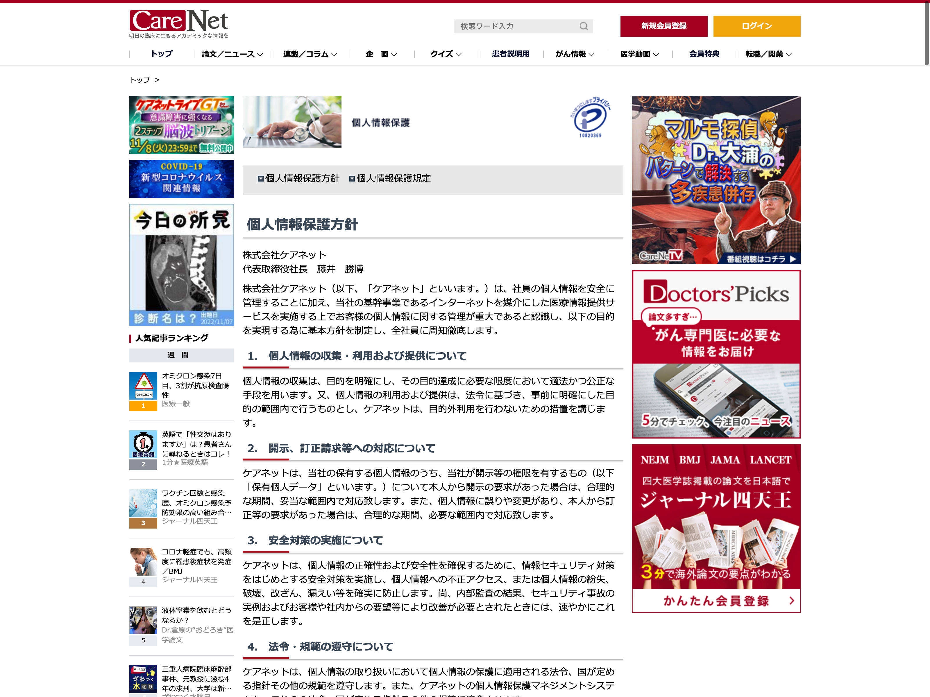 ケアネット Update:2022.10.31 カテゴリー:グロース サービス業 コンプライアンス プライバシーポリシー 免責注意事項 情報セキュリティ 有価証券報告書 沿革 詳細 Visit 詳細 Visit