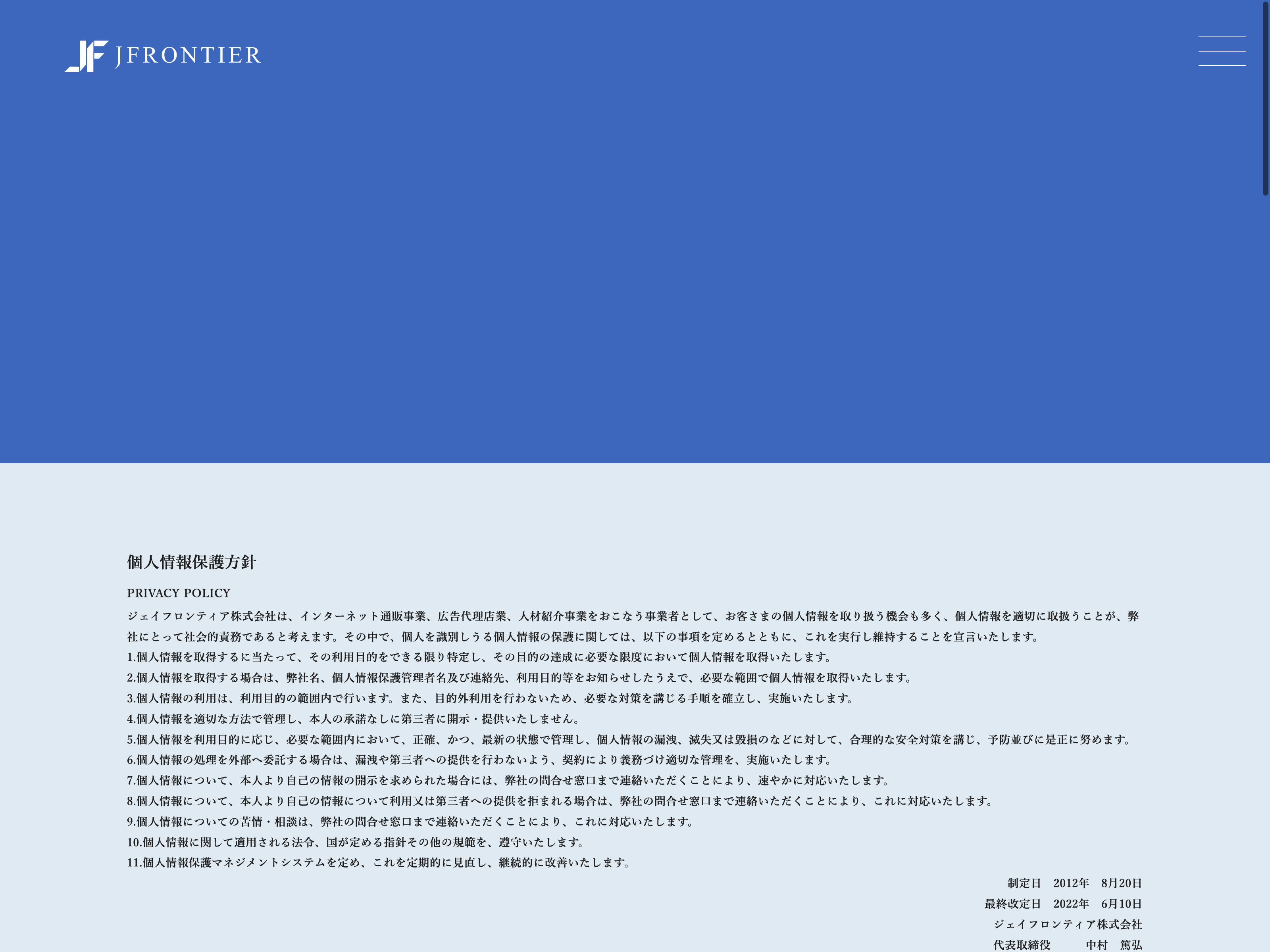 ジェイテック Update:2022.10.31 カテゴリー:グロース サービス業 プライバシーポリシー 事業内容 免責注意事項 情報セキュリティ 沿革 社長メッセージ 経営理念 詳細 Visit 詳細 Visit