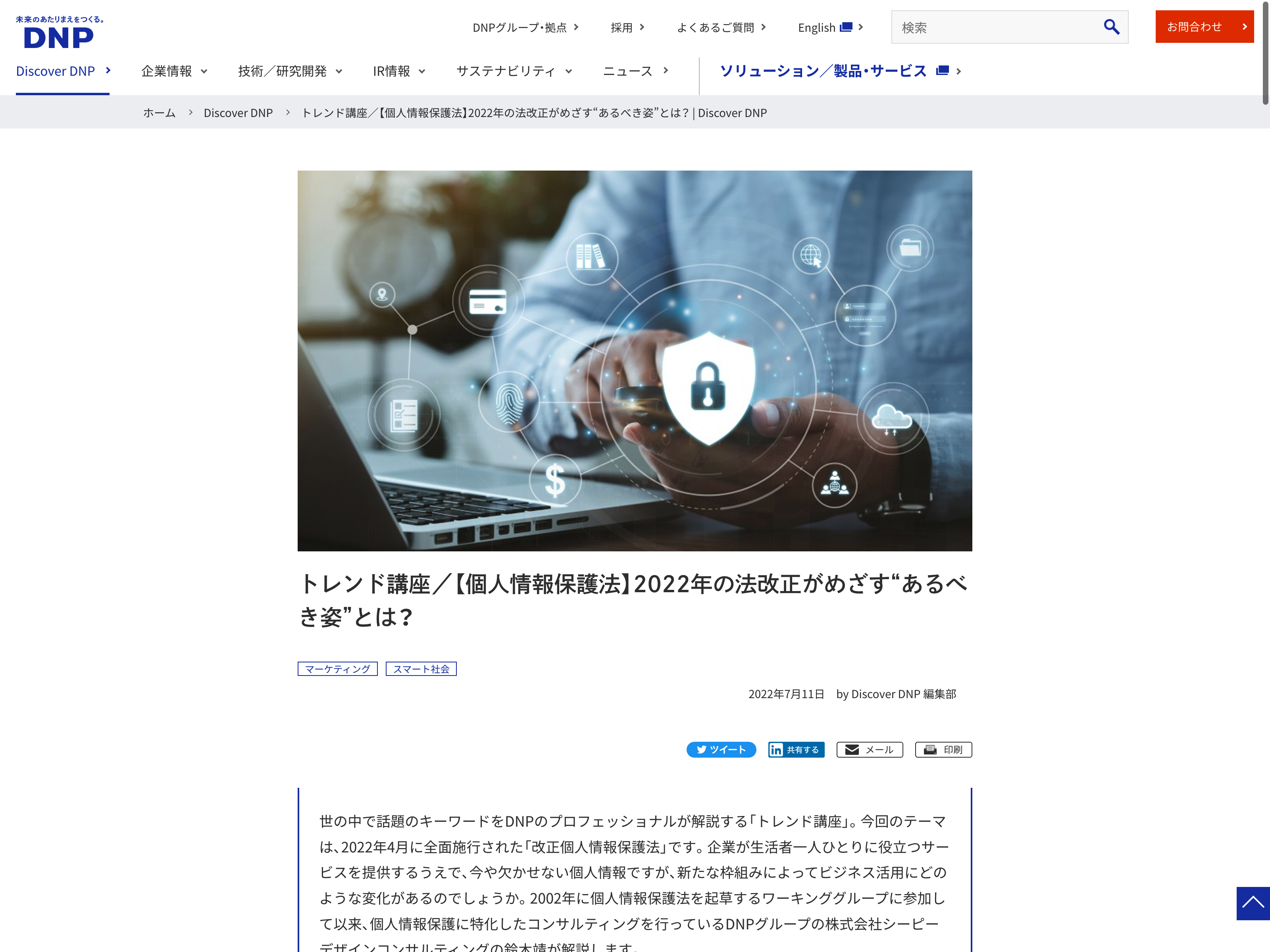 大日本印刷 Update:2022.10.31 カテゴリー:プライム その他製品 サステナビリティ ニュース一覧 プライバシーポリシー 事業内容 情報セキュリティ 沿革 詳細 Visit 詳細 Visit