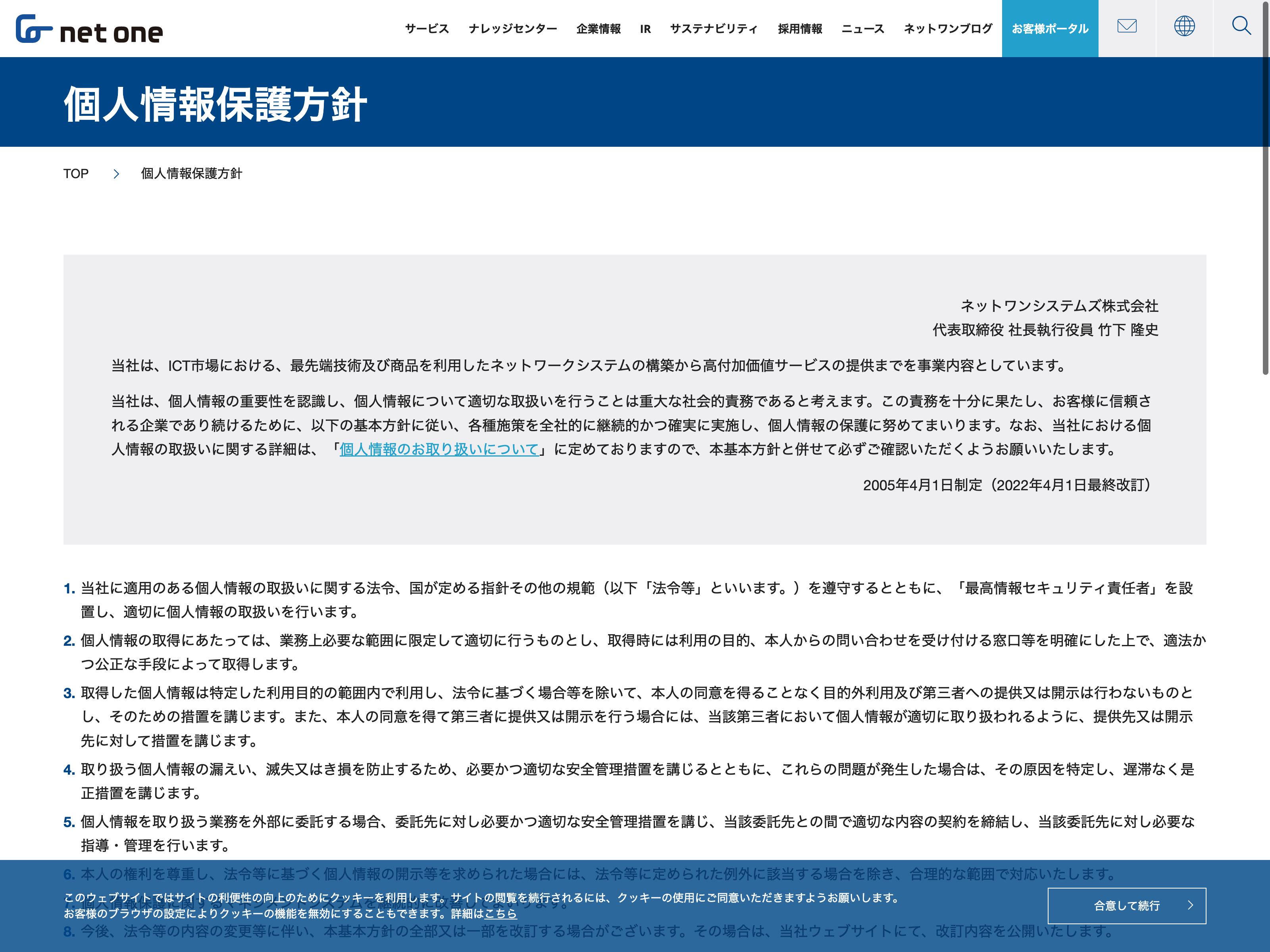 ネットワンシステムズ Update:2022.10.31 カテゴリー:プライム 情報・通信業 サステナビリティ プライバシーポリシー 免責注意事項 沿革 社長メッセージ 詳細 Visit 詳細 Visit