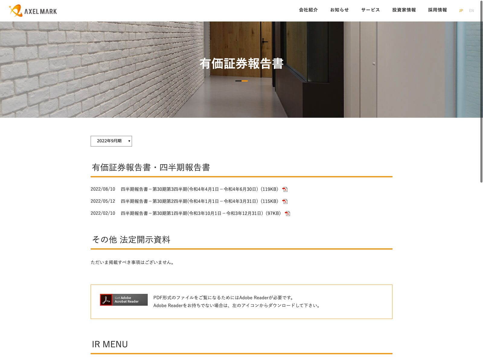 アクセルマーク Update:2022.10.31 カテゴリー:グロース 情報・通信業 プライバシーポリシー 事業内容 免責注意事項 情報セキュリティ 有価証券報告書 経営理念 詳細 Visit 詳細 Visit