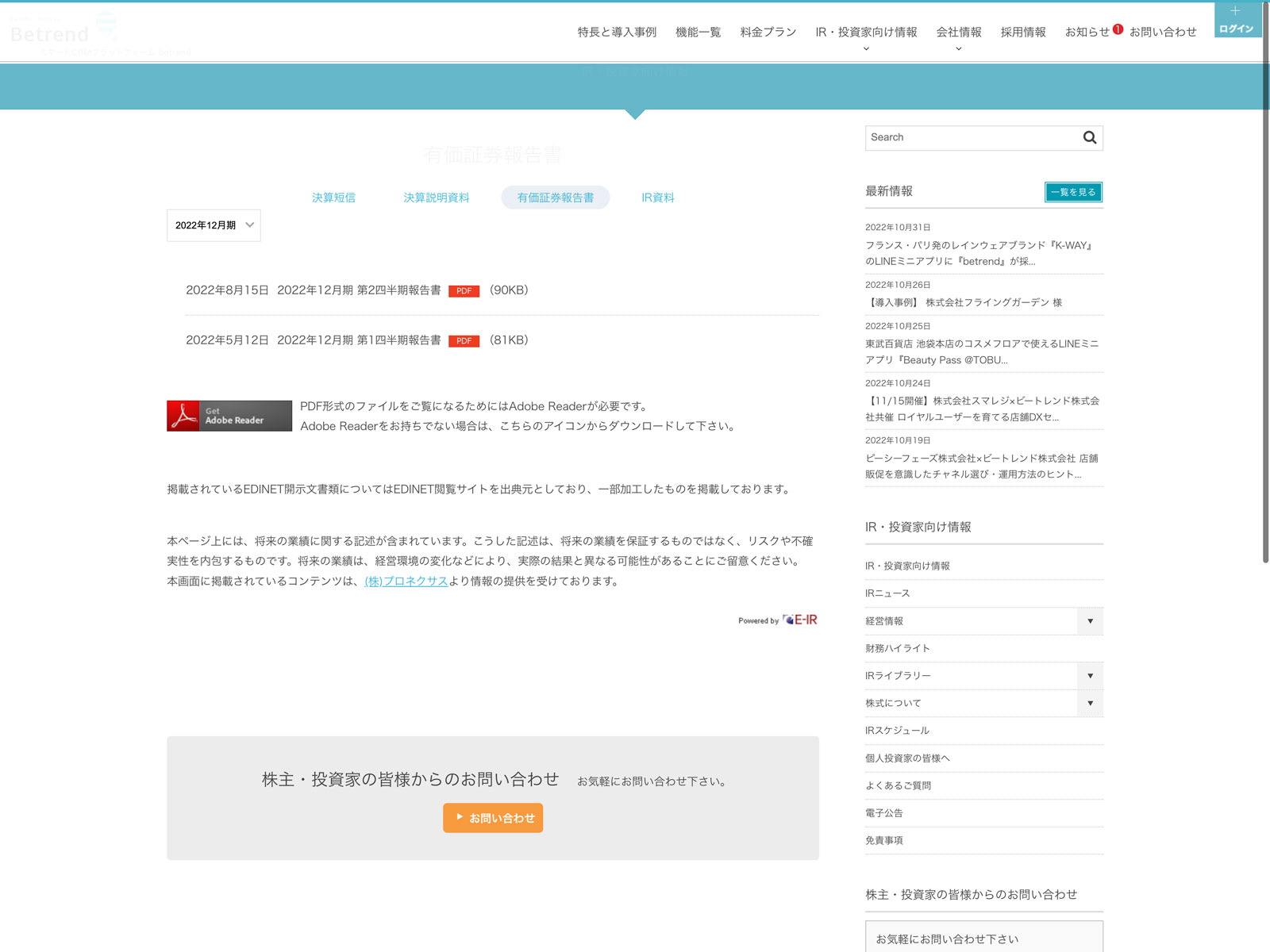 ビートレンド Update:2022.10.31 カテゴリー:グロース 情報・通信業 プライバシーポリシー 免責注意事項 情報セキュリティ 有価証券報告書 沿革 社長メッセージ 経営理念 詳細 Visit 詳細 Visit