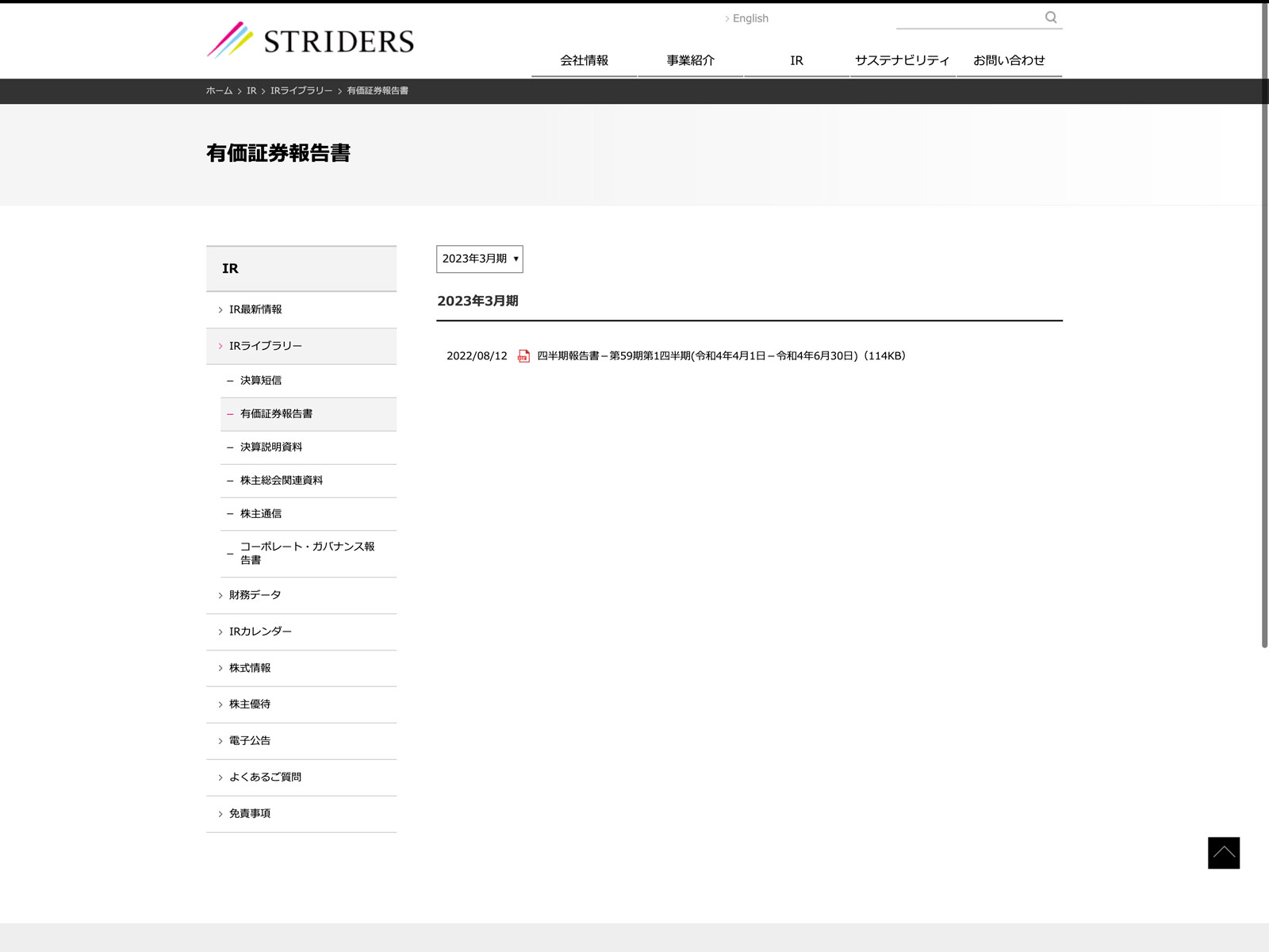 ストライダーズ Update:2022.10.31 カテゴリー:スタンダード 不動産業 サステナビリティ ニュース一覧 プライバシーポリシー 事業内容 免責注意事項 有価証券報告書 沿革 社長メッセージ 詳細 Visit 詳細 Visit