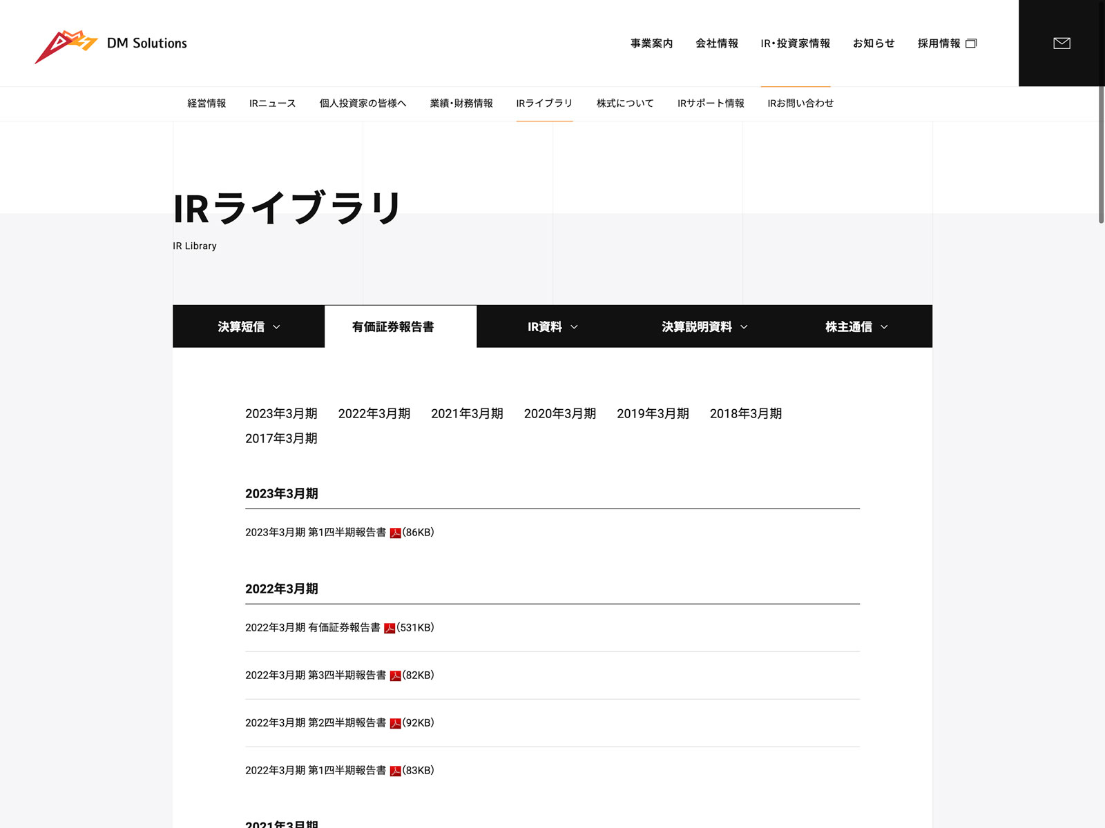 ディーエムソリューションズ Update:2022.10.31 カテゴリー:スタンダード サービス業 プライバシーポリシー 事業内容 免責注意事項 有価証券報告書 沿革 詳細 Visit 詳細 Visit