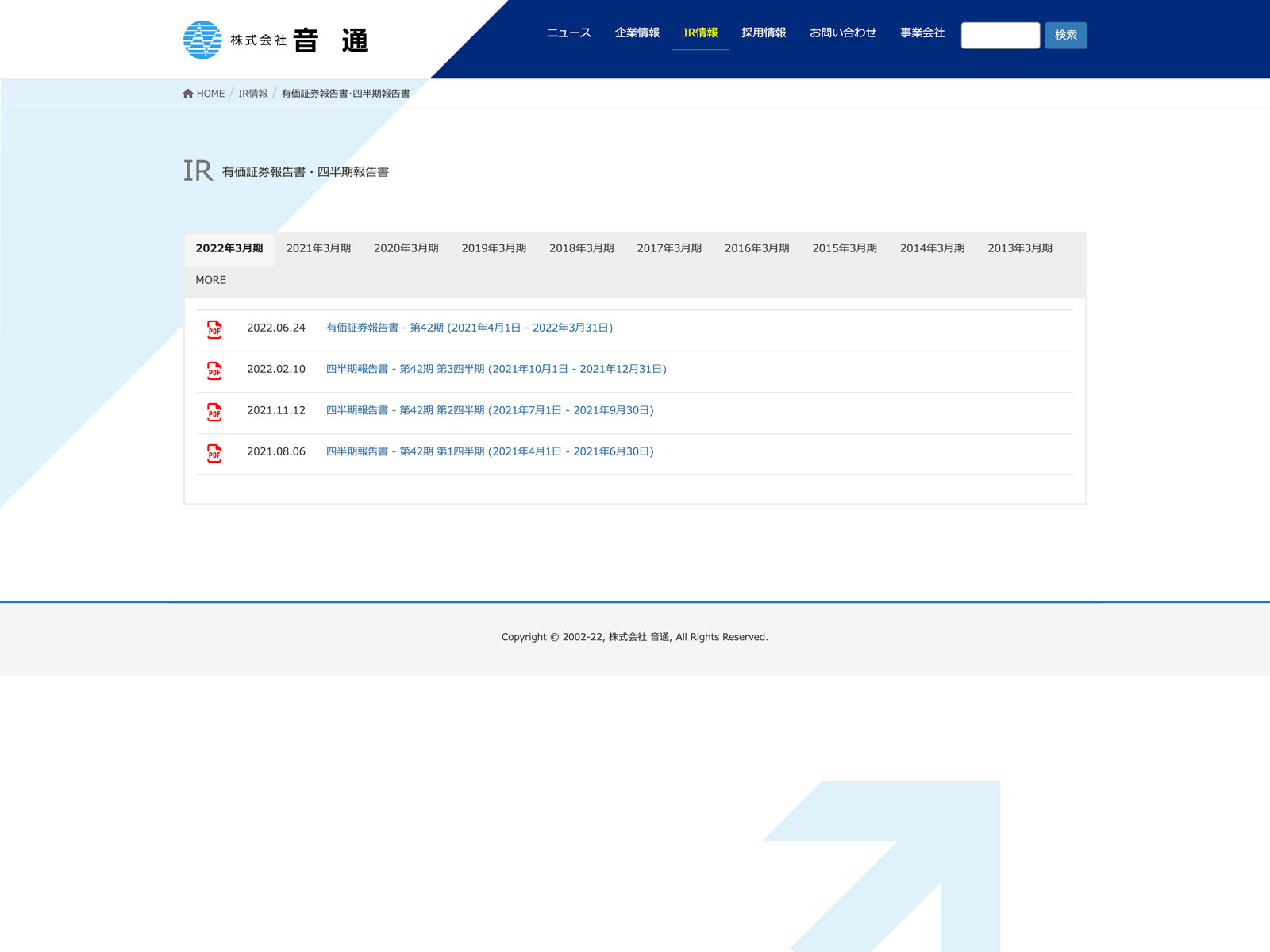 アイフィスジャパン Update:2022.10.31 カテゴリー:スタンダード その他製品 プライバシーポリシー 免責注意事項 情報セキュリティ 有価証券報告書 沿革 社長メッセージ 詳細 Visit 詳細 Visit