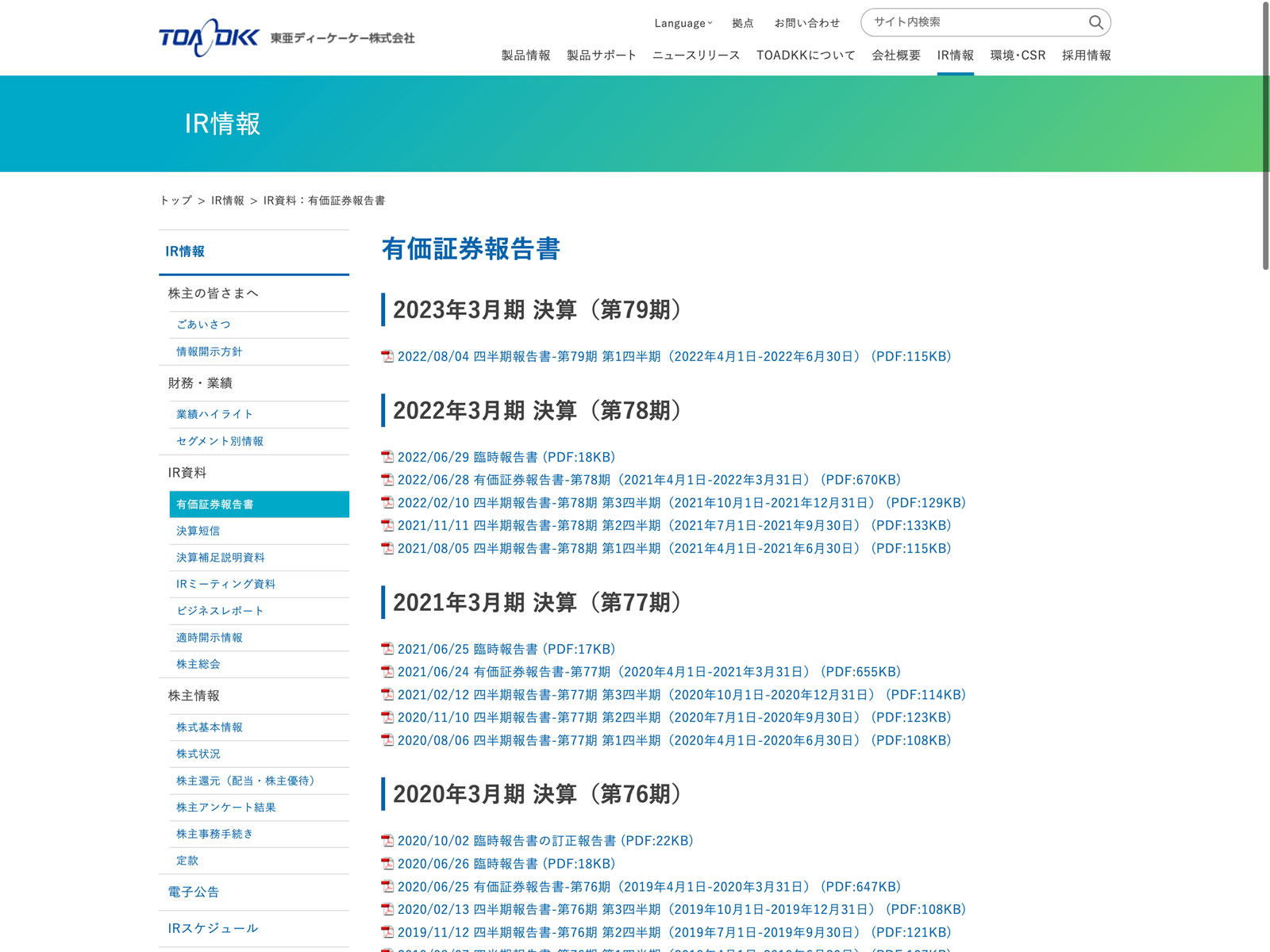 東亜ディーケーケー Update:2022.10.31 カテゴリー:スタンダード 電気機器 ニュース一覧 プライバシーポリシー 有価証券報告書 沿革 社長メッセージ 経営理念 詳細 Visit 詳細 Visit