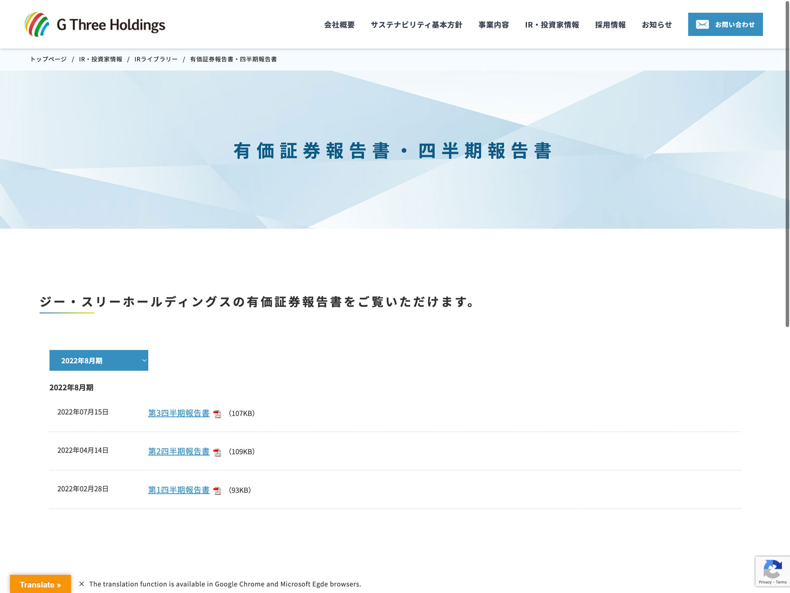 ジー・スリーホールディングス Update:2022.10.31 カテゴリー:スタンダード 情報・通信業 コンプライアンス サステナビリティ 事業内容 有価証券報告書 社長メッセージ 詳細 Visit 詳細 Visit