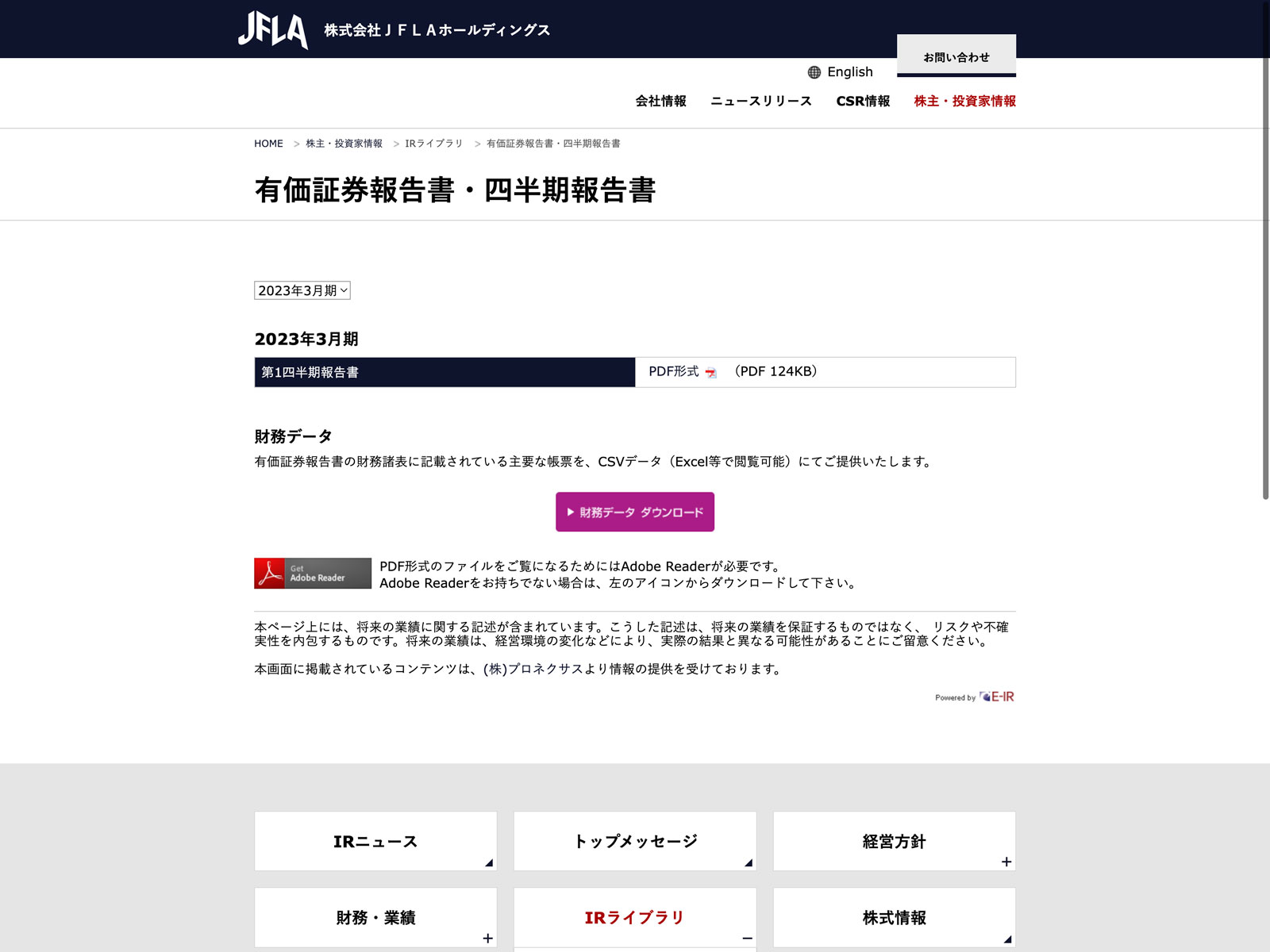 JFLAホールディングス Update:2022.10.31 カテゴリー:スタンダード 小売業 コンプライアンス 事業内容 免責注意事項 有価証券報告書 沿革 社長メッセージ 詳細 Visit 詳細 Visit