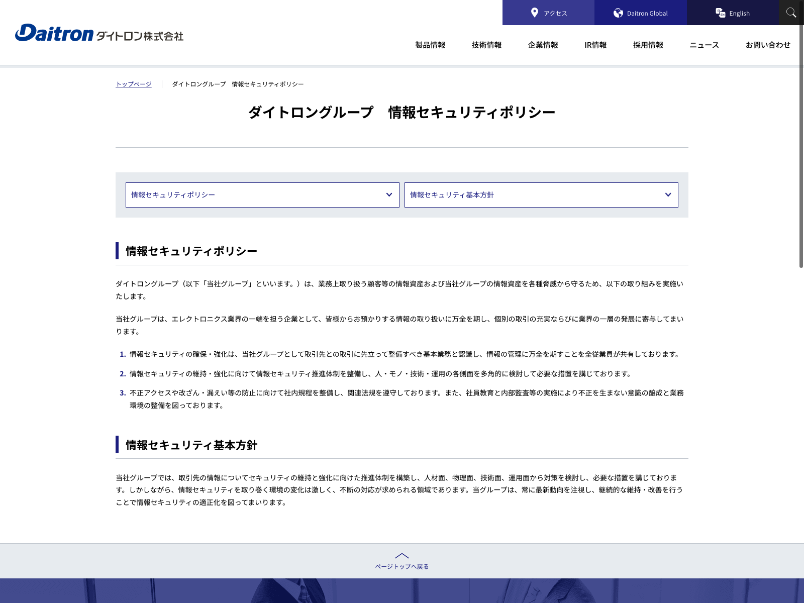 大日本印刷 Update:2022.10.31 カテゴリー:プライム その他製品 サステナビリティ ニュース一覧 プライバシーポリシー 事業内容 情報セキュリティ 沿革 詳細 Visit 詳細 Visit