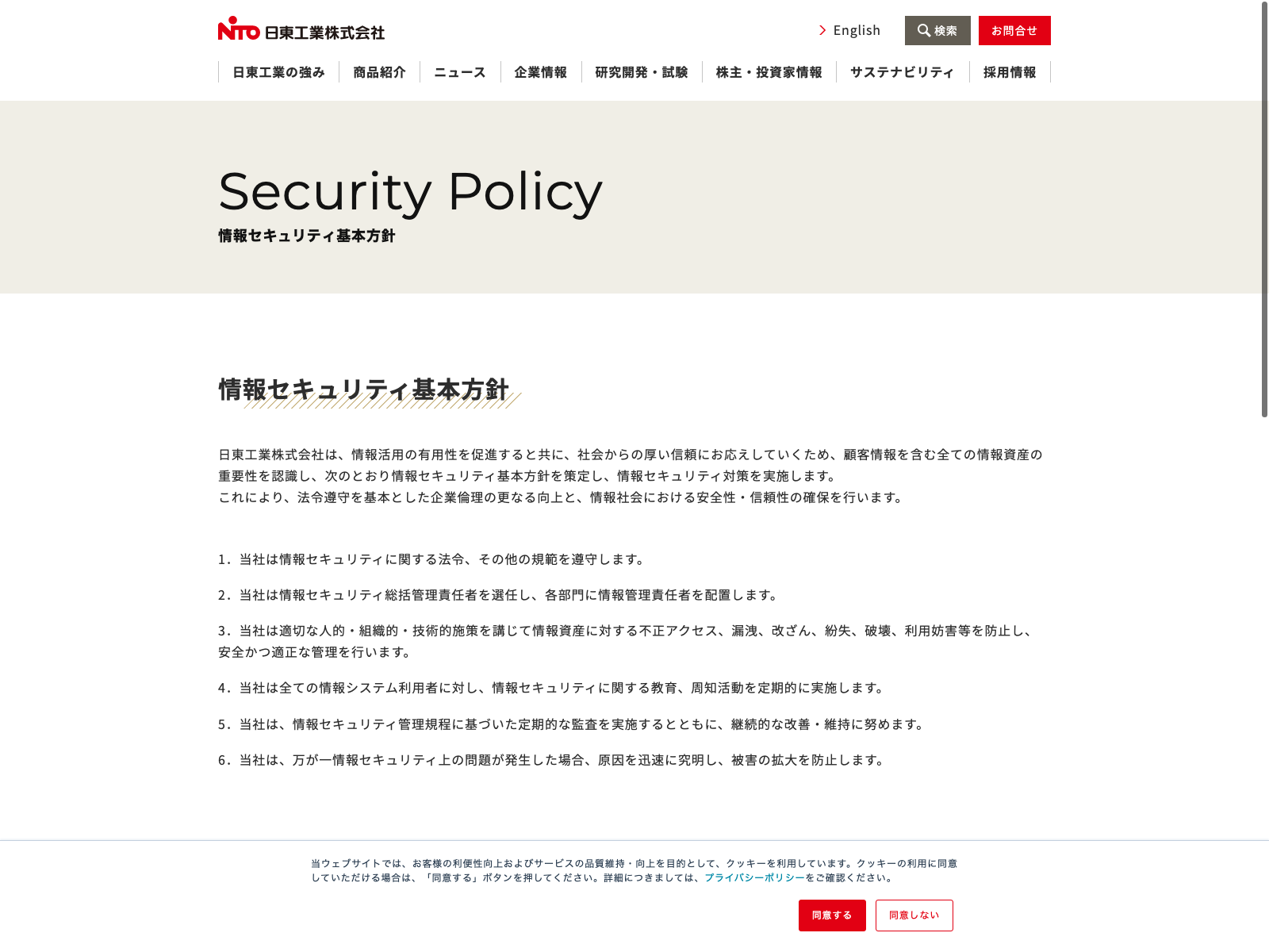 日東電工 Update:2022.10.31 カテゴリー:プライム 化学 コンプライアンス サステナビリティ プライバシーポリシー 情報セキュリティ 有価証券報告書 沿革 経営理念 詳細 Visit 詳細 Visit