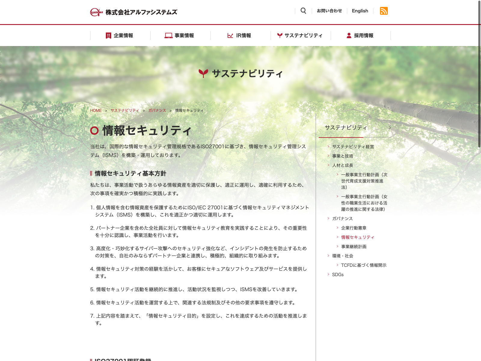 アルファシステムズ Update:2022.10.31 カテゴリー:プライム 情報・通信業 サステナビリティ ニュース一覧 プライバシーポリシー 事業内容 情報セキュリティ 沿革 経営理念 詳細 Visit 詳細 Visit