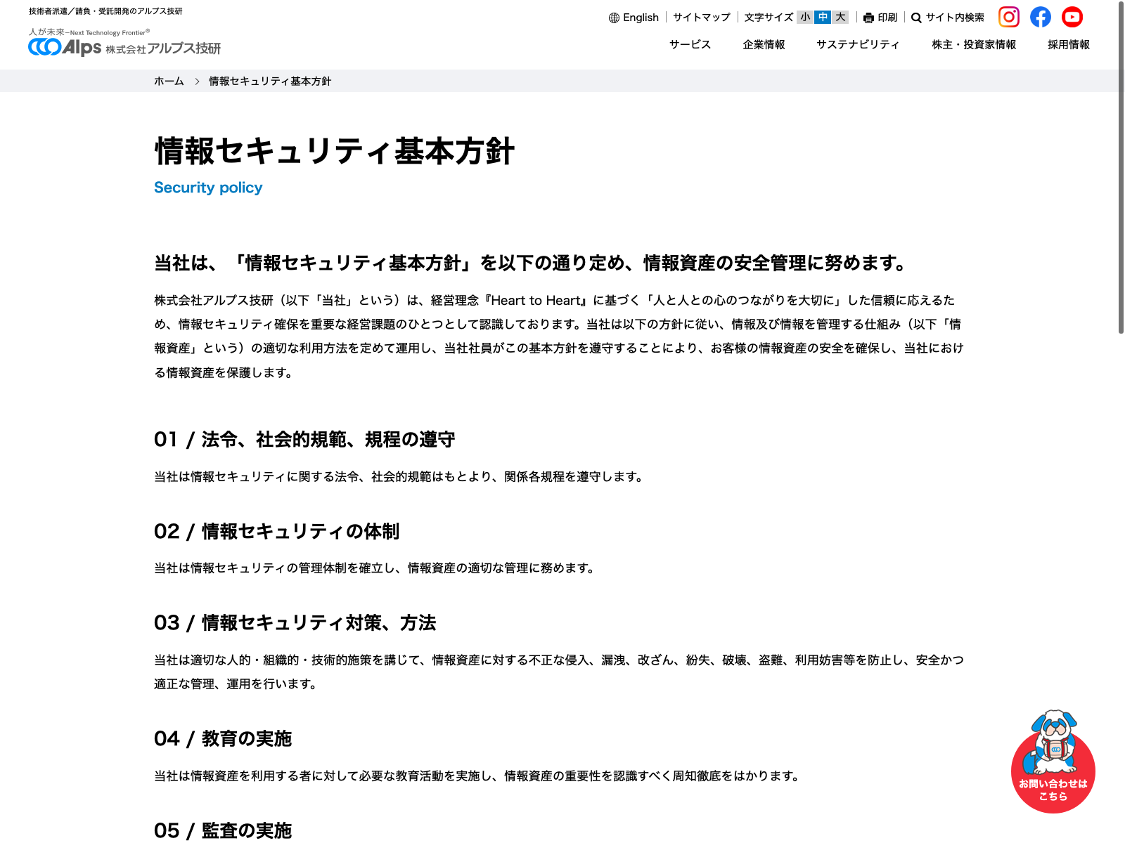 アルプス技研 Update:2022.10.31 カテゴリー:プライム サービス業 コンプライアンス サステナビリティ ビジョン 情報セキュリティ 有価証券報告書 沿革 経営理念 詳細 Visit 詳細 Visit