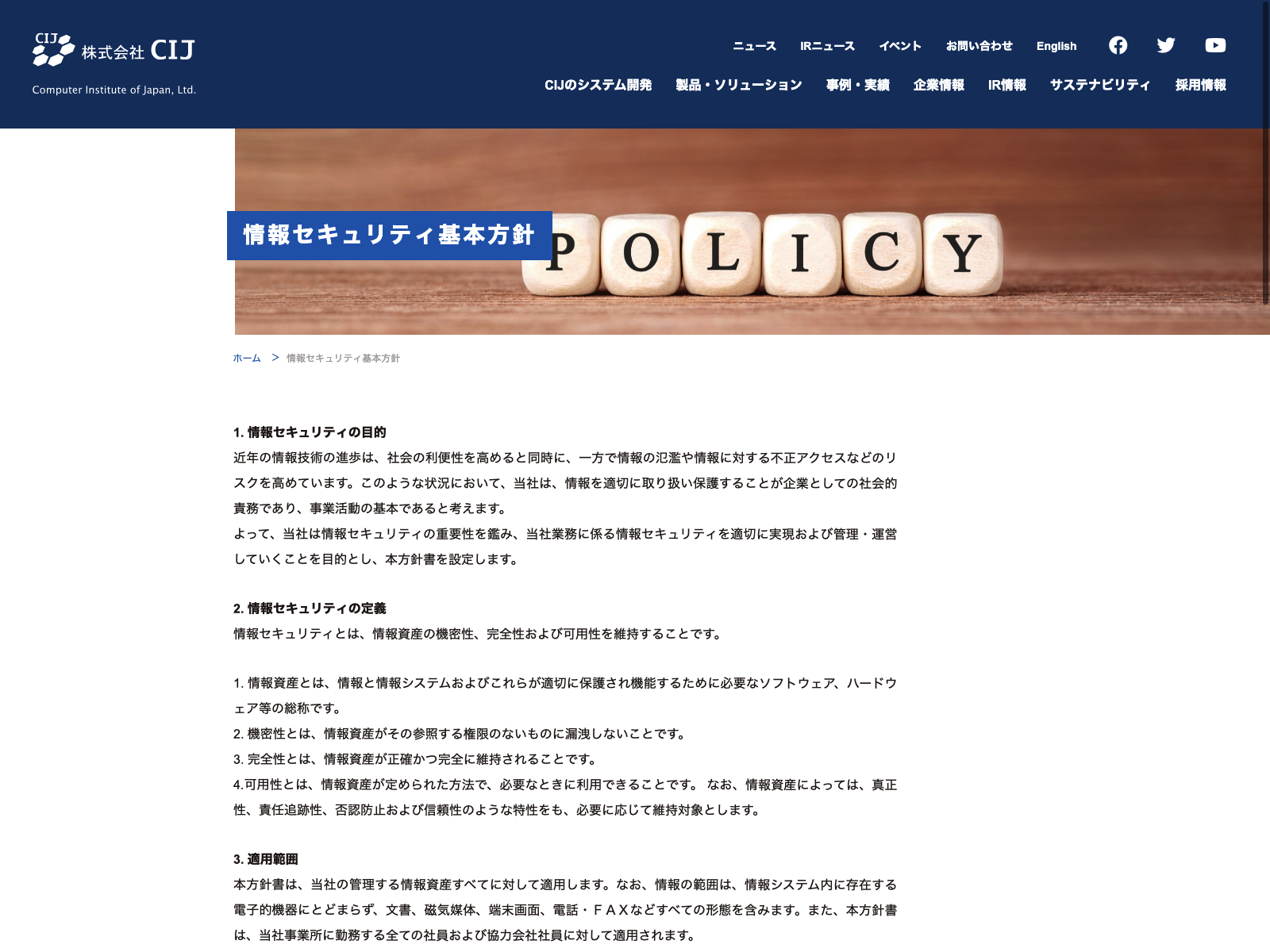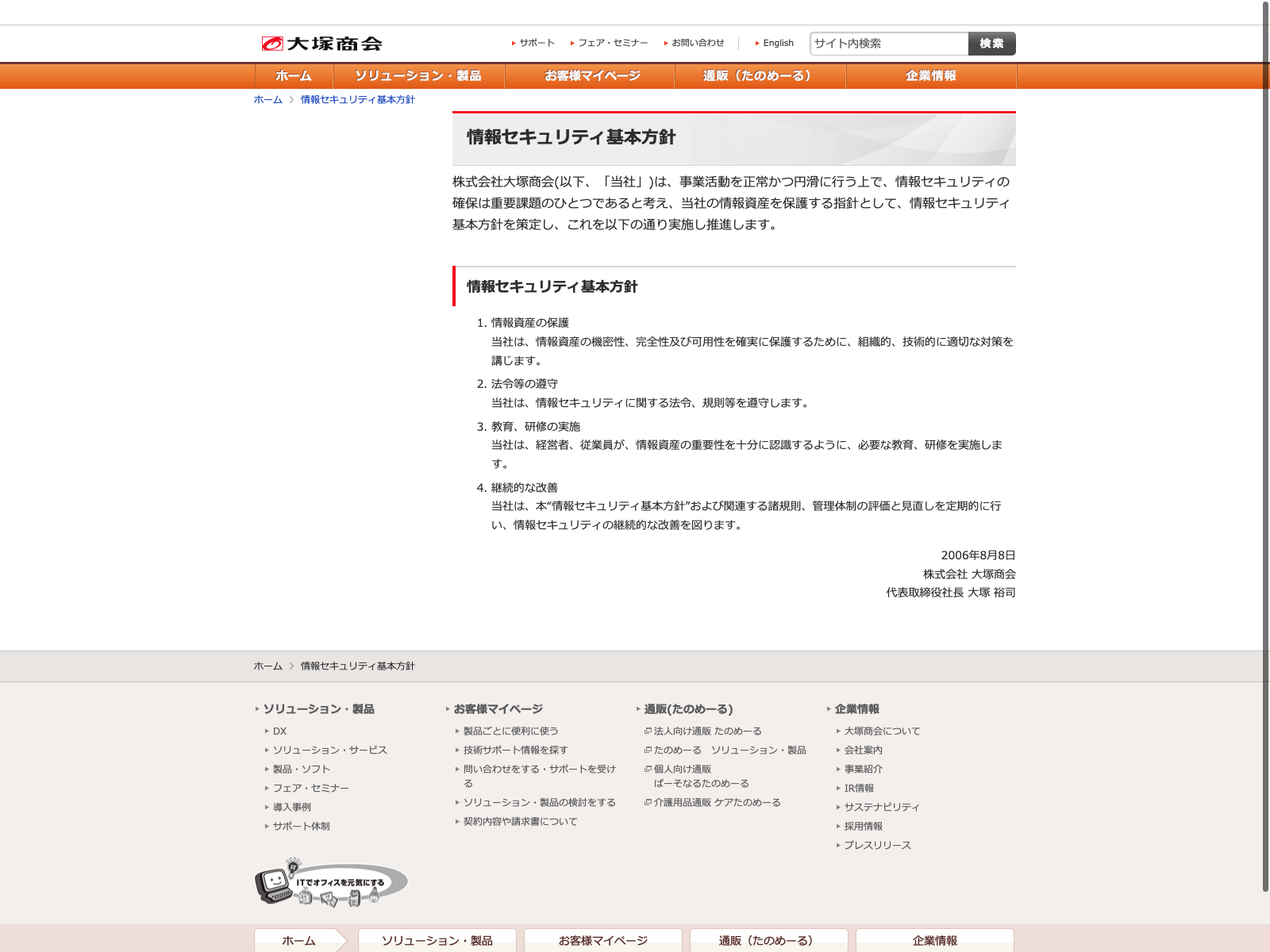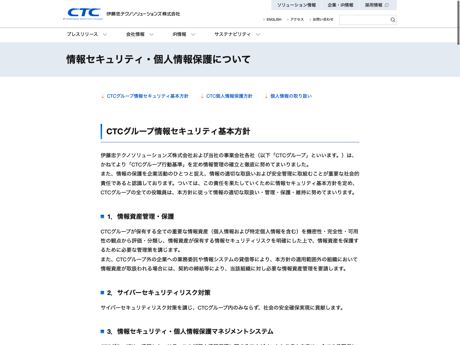 伊藤忠テクノソリューションズ Update:2022.10.31 カテゴリー:プライム 情報・通信業 サステナビリティ ニュース一覧 プライバシーポリシー 情報セキュリティ 詳細 Visit 詳細 Visit
