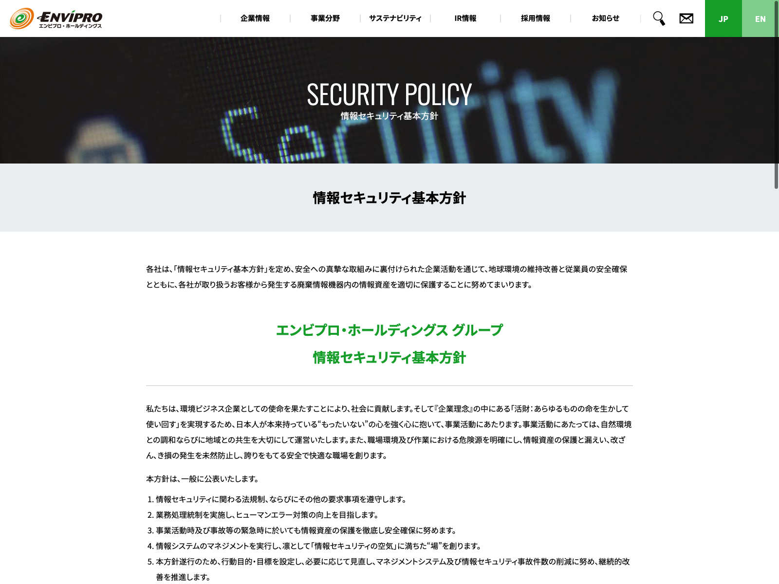 エンビプロ・ホールディングス Update:2022.10.31 カテゴリー:プライム 鉄鋼 コンプライアンス サステナビリティ プライバシーポリシー 情報セキュリティ 沿革 詳細 Visit 詳細 Visit