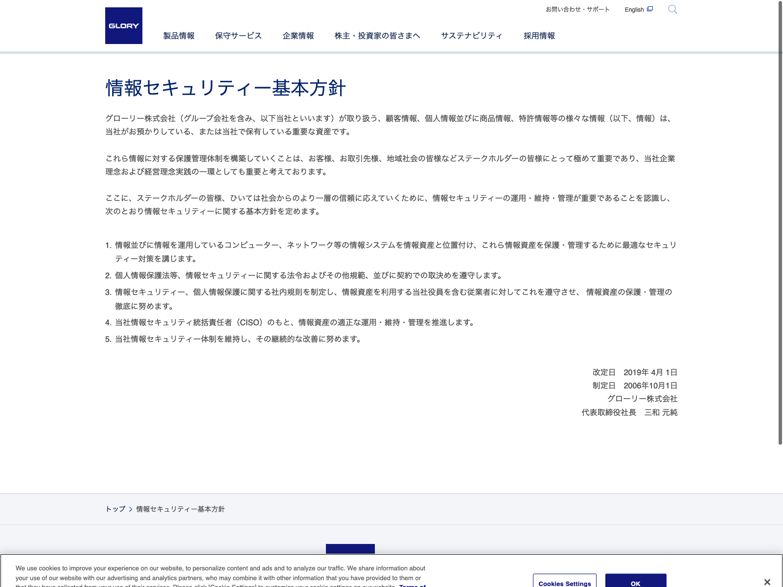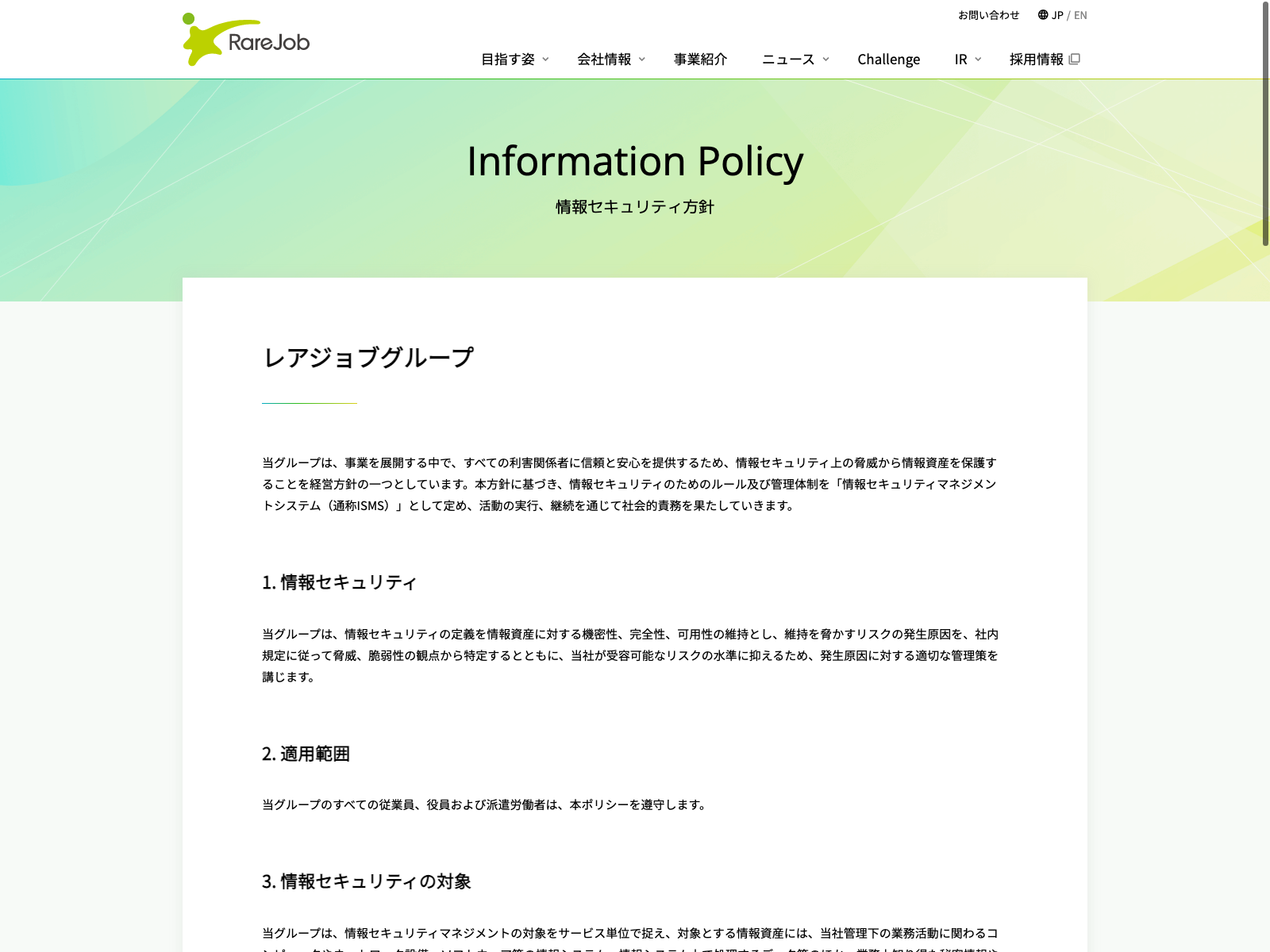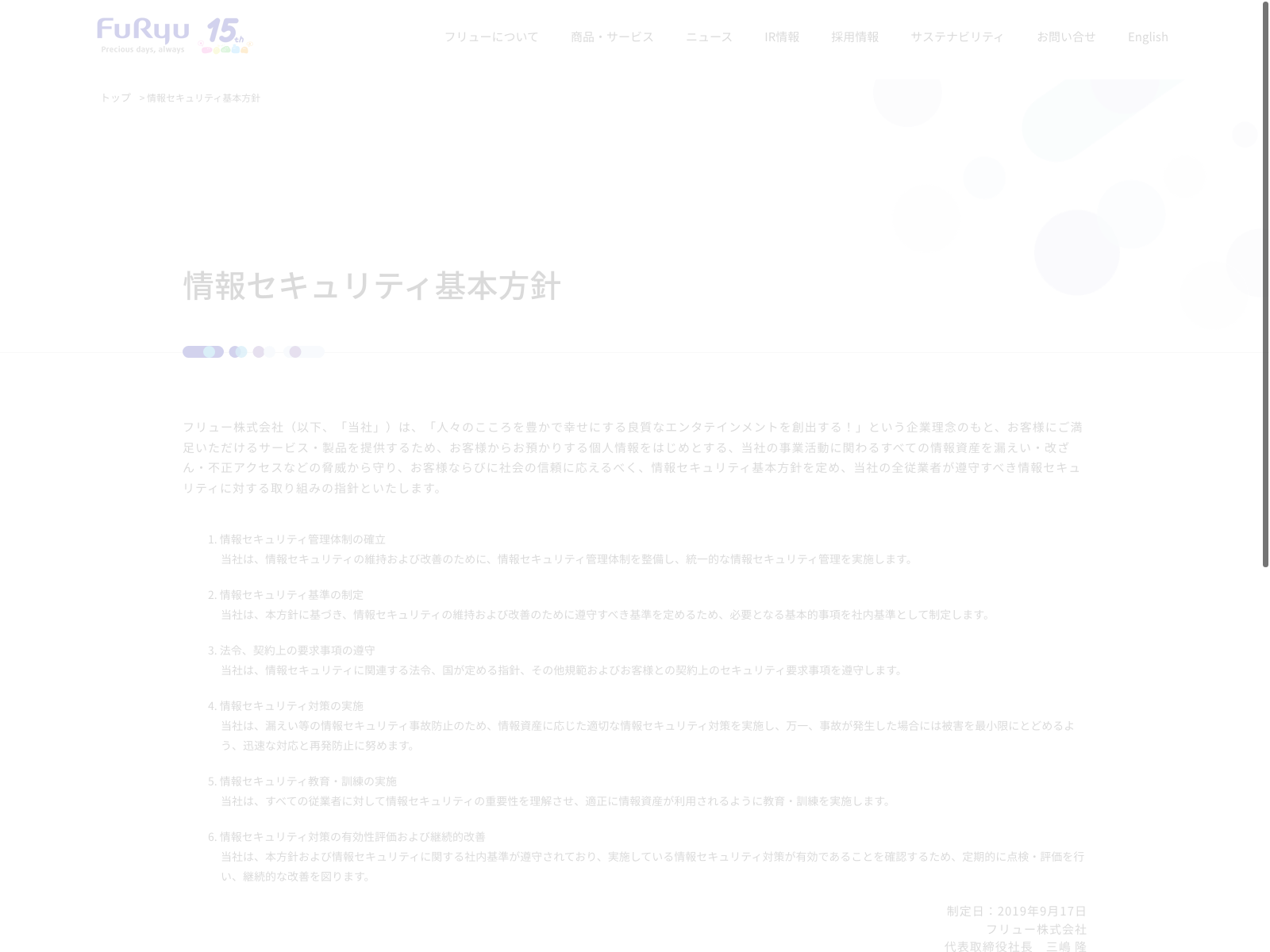 フルキャストホールディングス Update:2022.10.31 カテゴリー:プライム サービス業 サステナビリティ ニュース一覧 プライバシーポリシー 情報セキュリティ 詳細 Visit 詳細 Visit