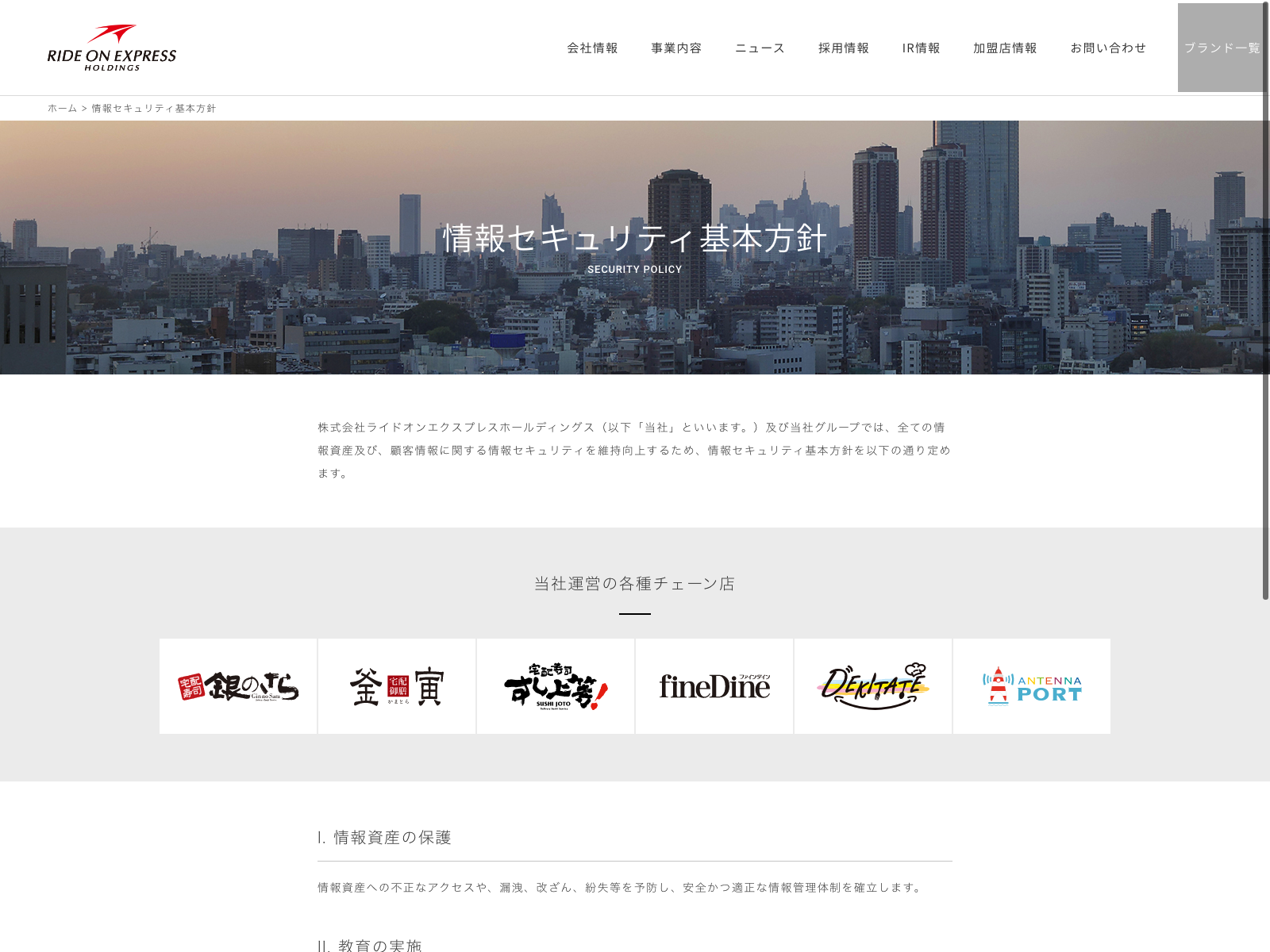 ライドオンエクスプレスホールディングス Update:2022.10.31 カテゴリー:プライム サービス業 サステナビリティ ビジョン 事業内容 情報セキュリティ 沿革 詳細 Visit 詳細 Visit