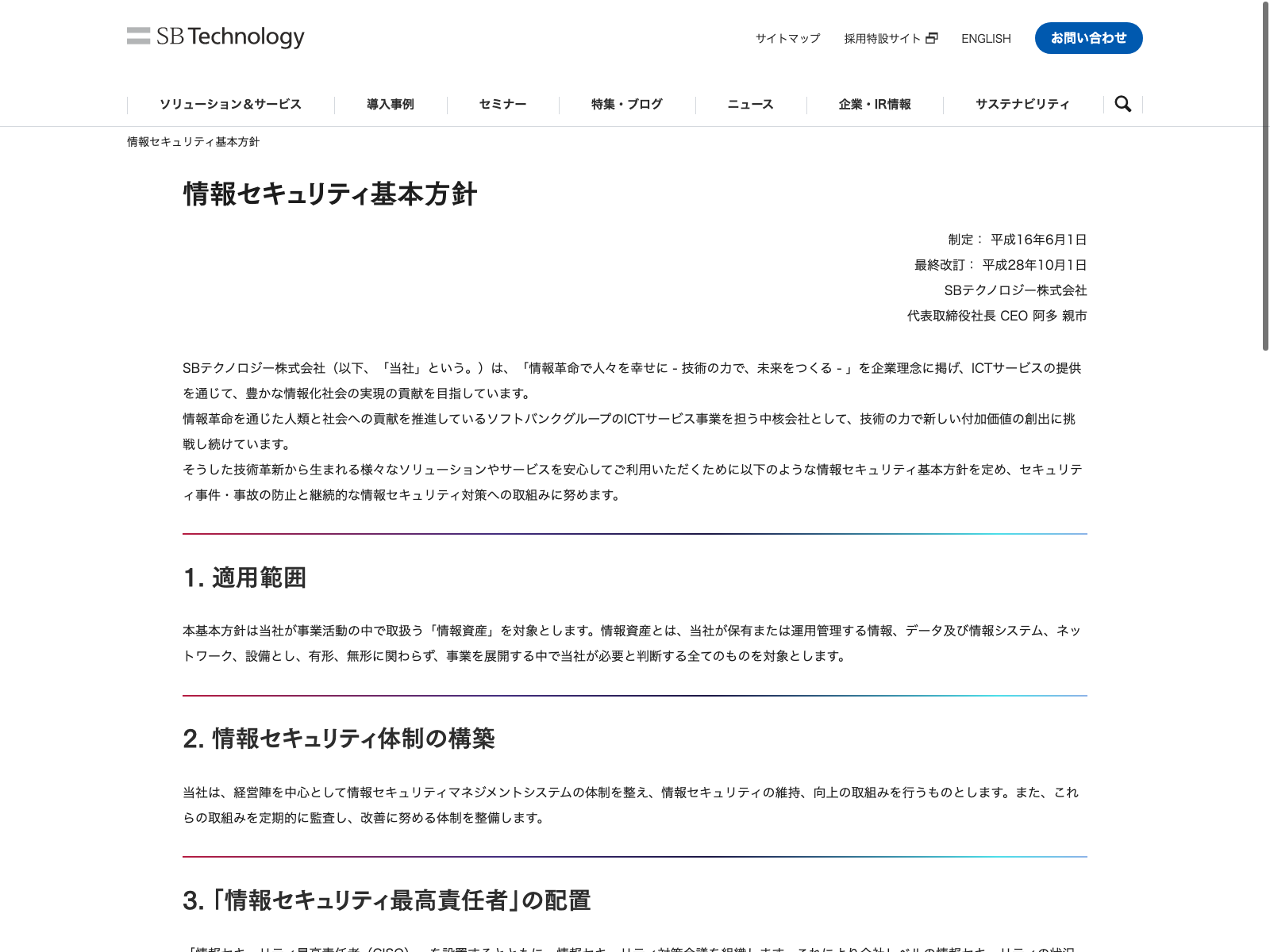 SBテクノロジー Update:2022.10.31 カテゴリー:プライム 情報・通信業 サステナビリティ プライバシーポリシー 事業内容 免責注意事項 情報セキュリティ 沿革 経営理念 詳細 Visit 詳細 Visit