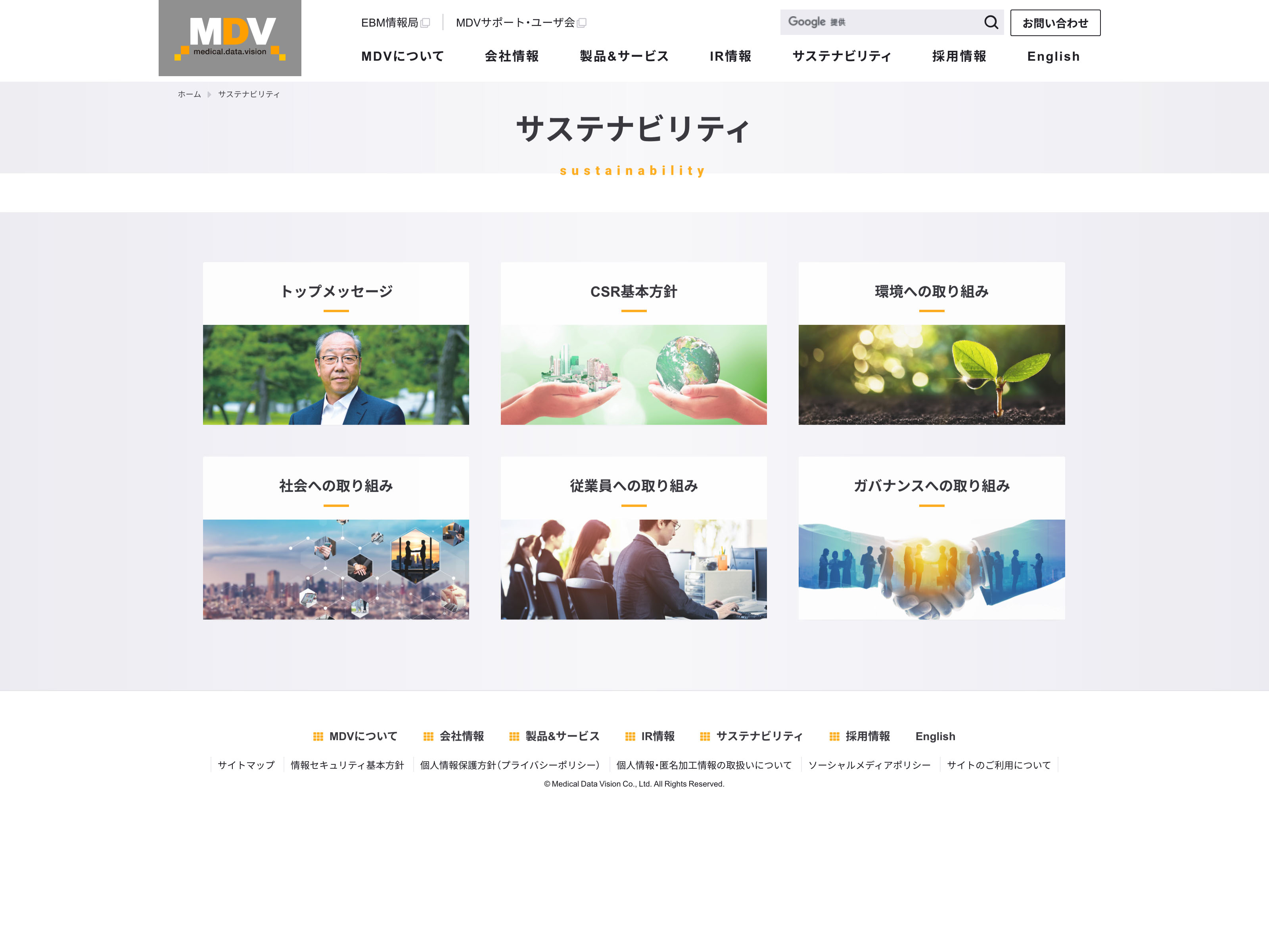 メディカル・データ・ビジョン Update:2022.10.31 カテゴリー:プライム 情報・通信業 サステナビリティ ニュース一覧 プライバシーポリシー 事業内容 免責注意事項 情報セキュリティ 有価証券報告書 詳細 Visit 詳細 Visit