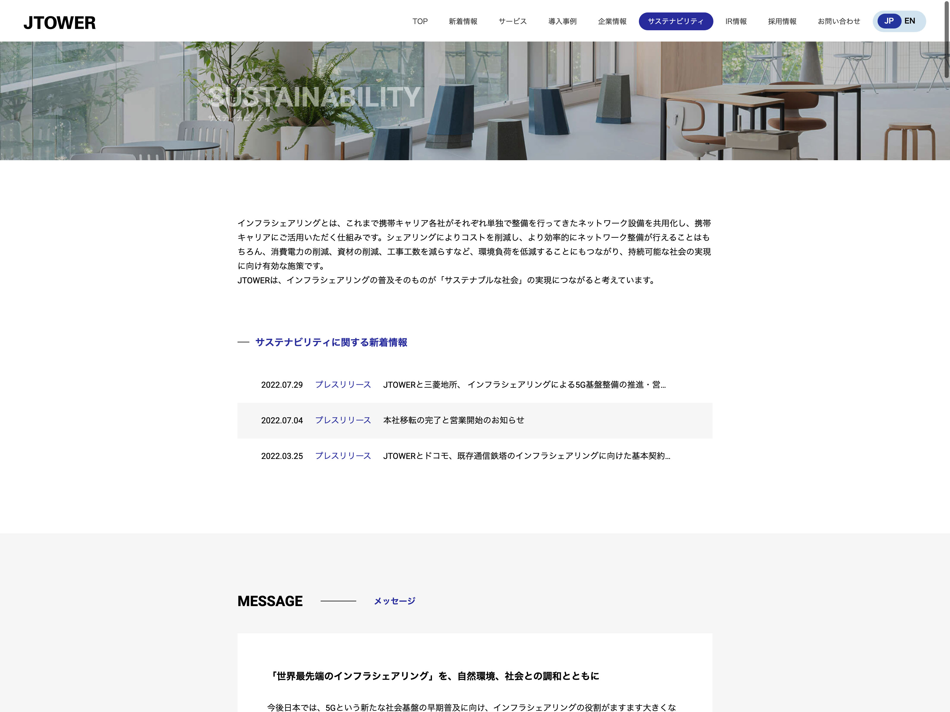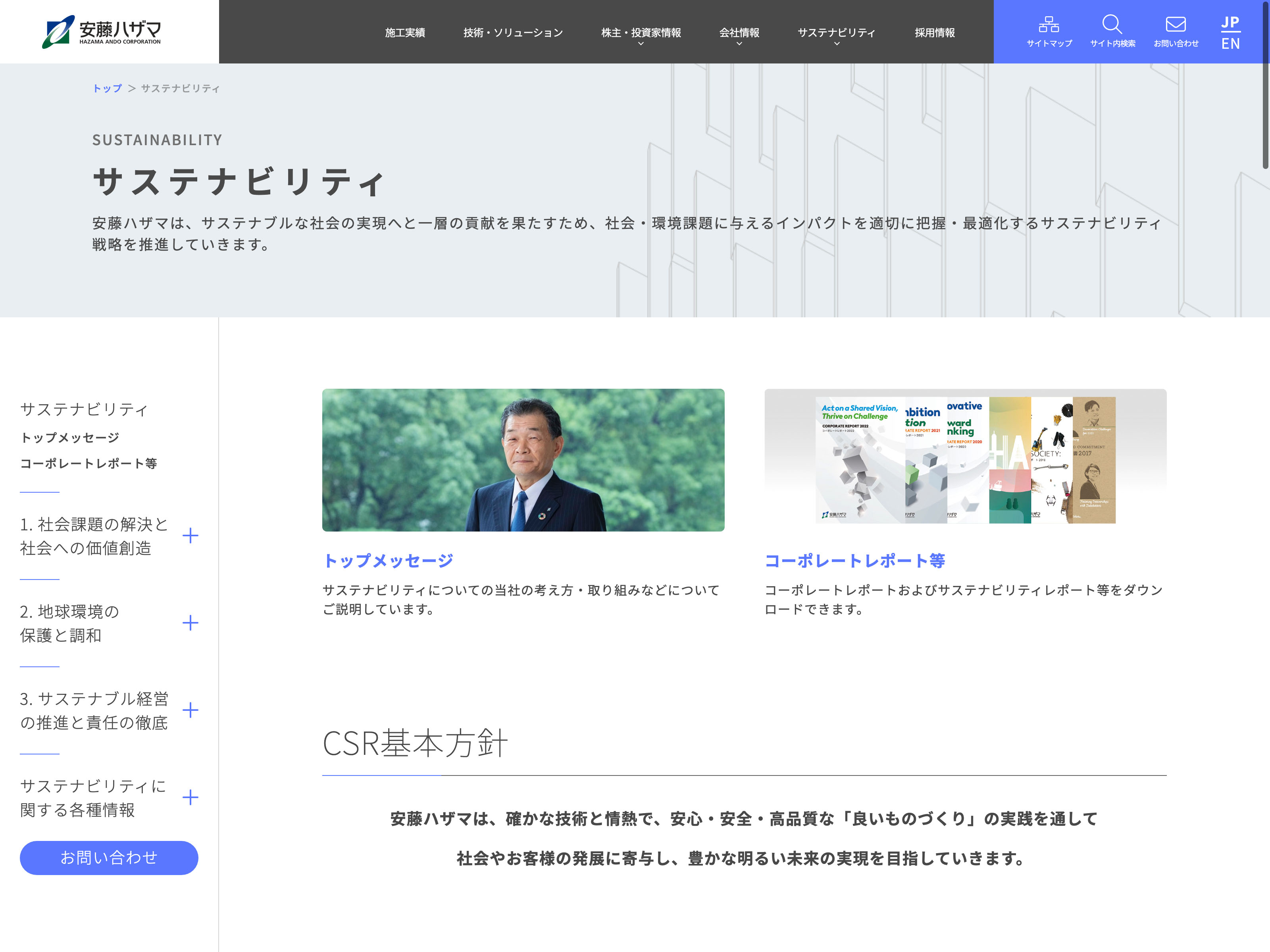 東急建設 Update:2022.10.31 カテゴリー:プライム 建設業 IR情報 コンプライアンス サステナビリティ ニュース一覧 プライバシーポリシー 事業内容 有価証券報告書 社長メッセージ 詳細 Visit 詳細 Visit