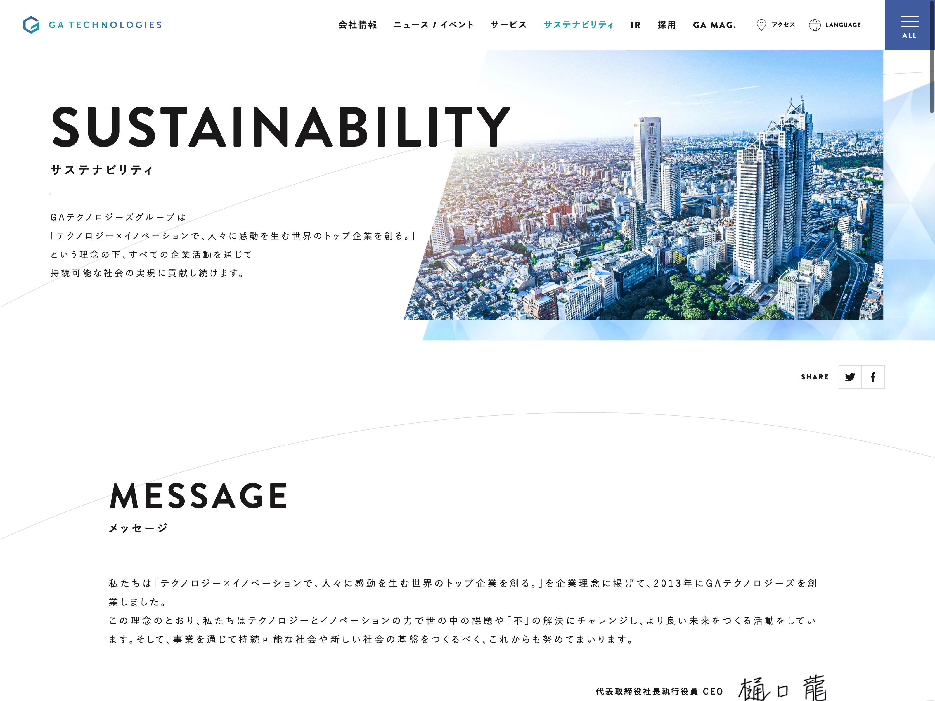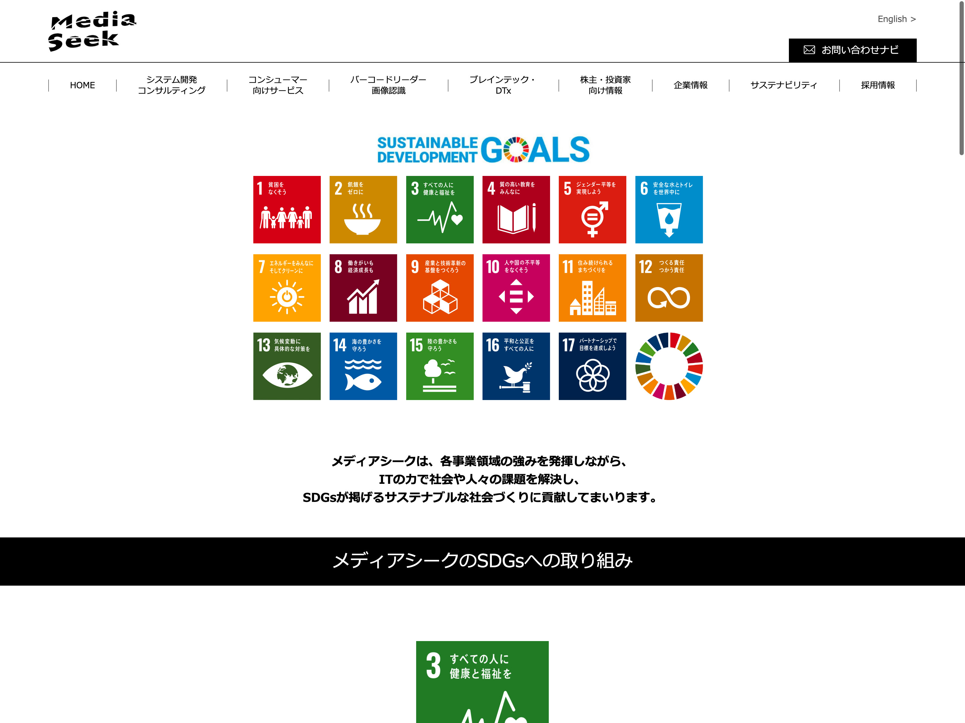 メディアシーク Update:2022.10.31 カテゴリー:グロース 情報・通信業 サステナビリティ ニュース一覧 プライバシーポリシー 事業内容 有価証券報告書 沿革 詳細 Visit 詳細 Visit