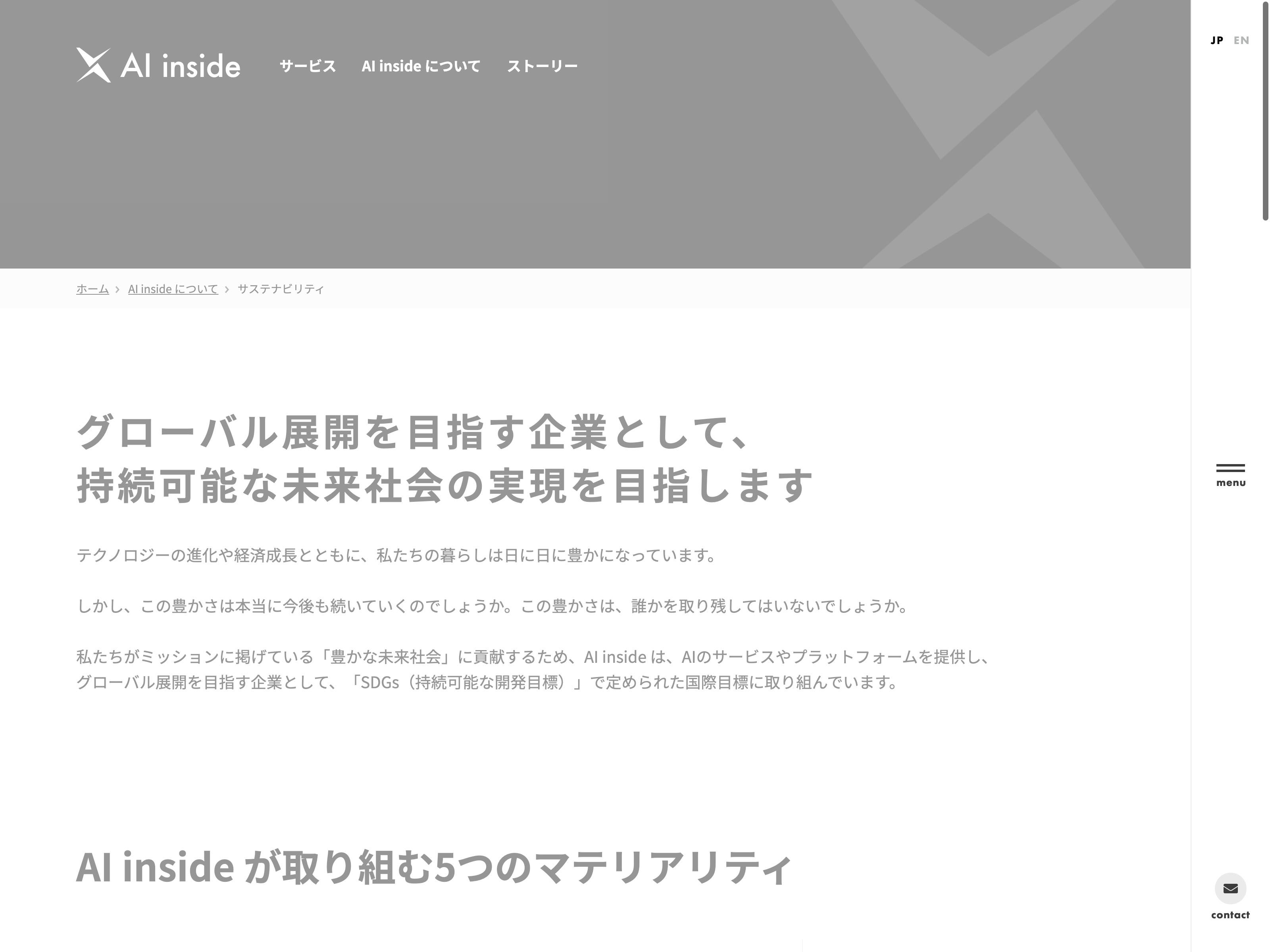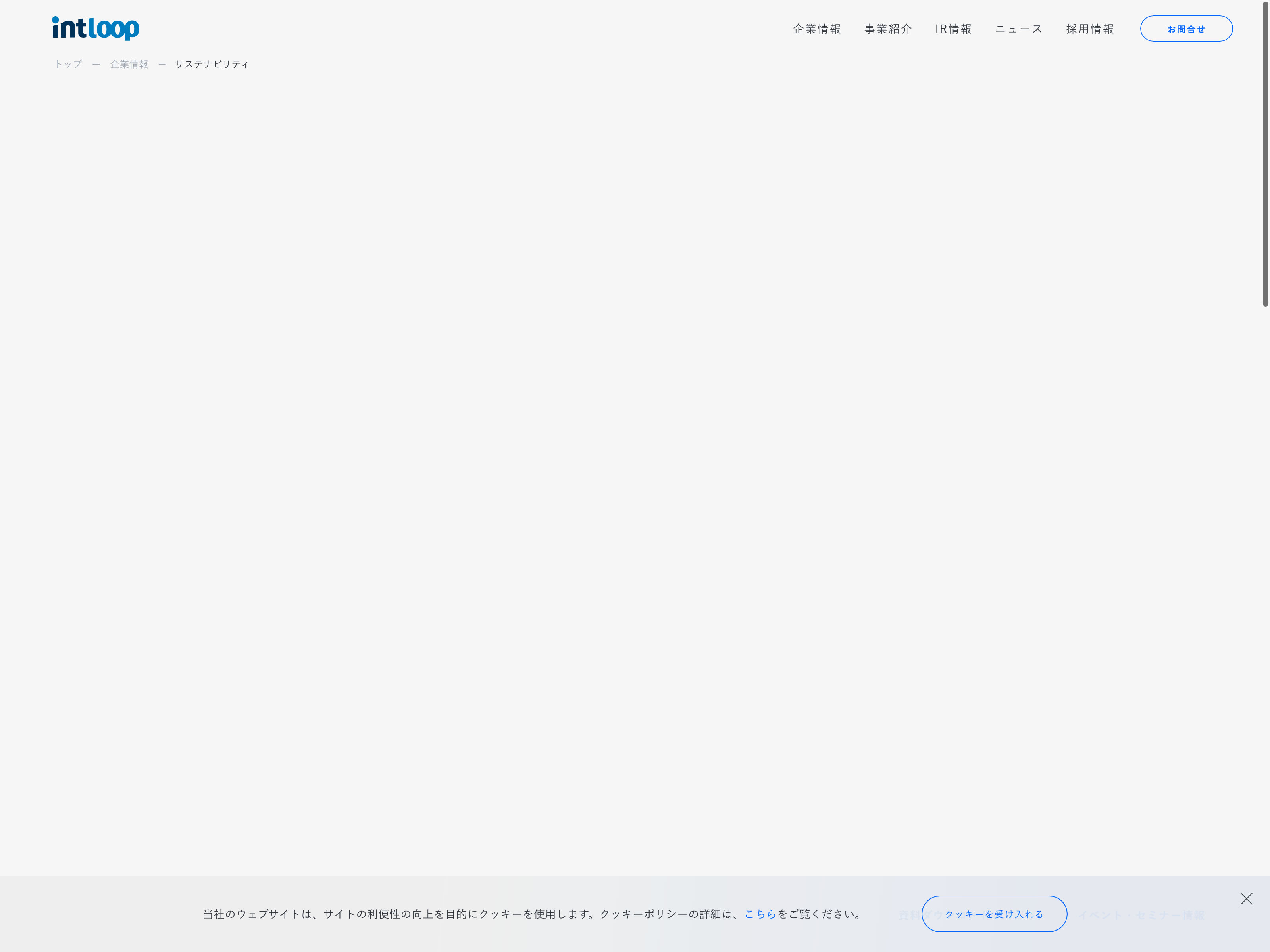 INTLOOP Update:2022.10.31 カテゴリー:グロース サービス業 サステナビリティ プライバシーポリシー 事業内容 免責注意事項 沿革 社長メッセージ 詳細 Visit 詳細 Visit