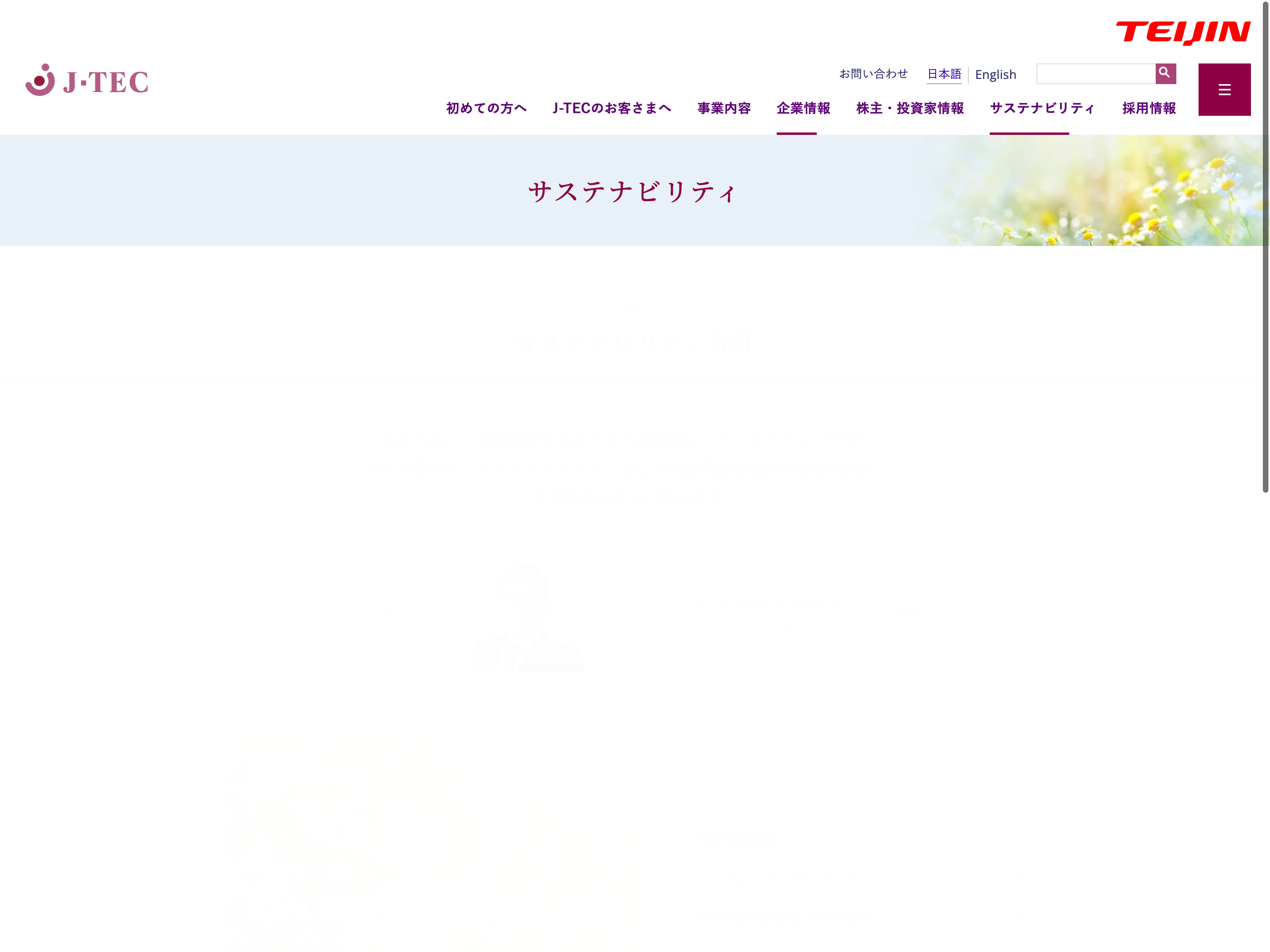 ジャパン・ティッシュ・エンジニアリング Update:2022.10.31 カテゴリー:グロース 精密機器 コンプライアンス サステナビリティ ニュース一覧 プライバシーポリシー 事業内容 情報セキュリティ 沿革 詳細 Visit 詳細 Visit