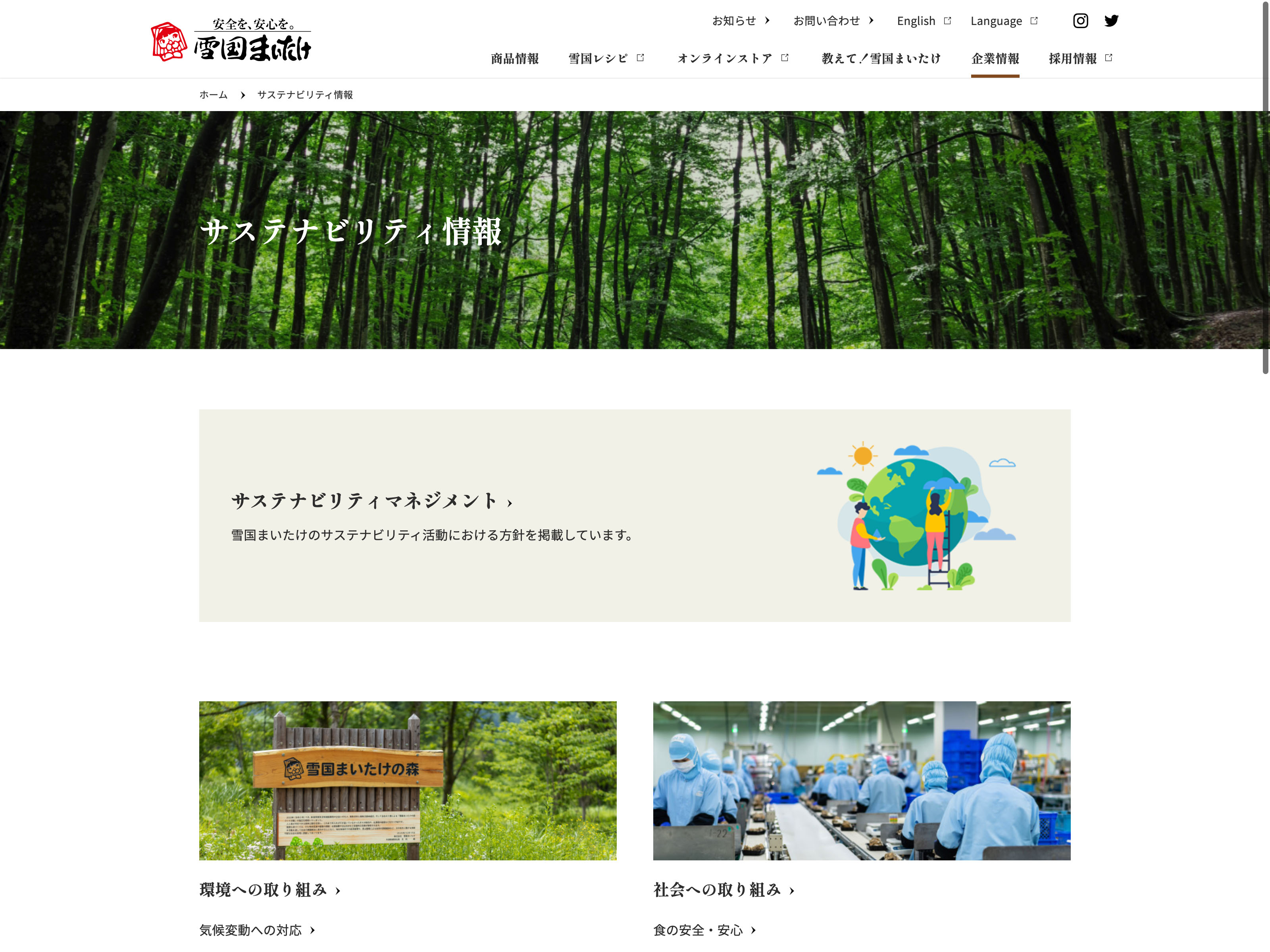 雪国まいたけ Update:2022.10.31 カテゴリー:プライム 水産・農林業 IR情報 サステナビリティ プライバシーポリシー 沿革 社長メッセージ 経営理念 詳細 Visit 詳細 Visit