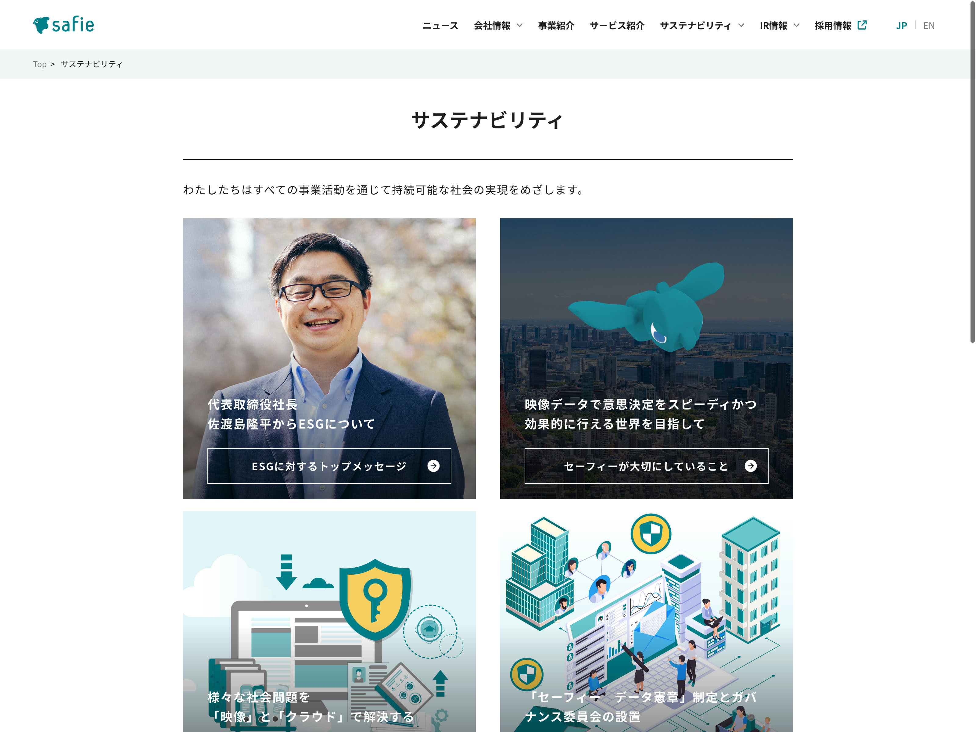 セーフィー Update:2022.10.31 カテゴリー:グロース 情報・通信業 サステナビリティ ニュース一覧 事業内容 免責注意事項 情報セキュリティ 沿革 社長メッセージ 詳細 Visit 詳細 Visit