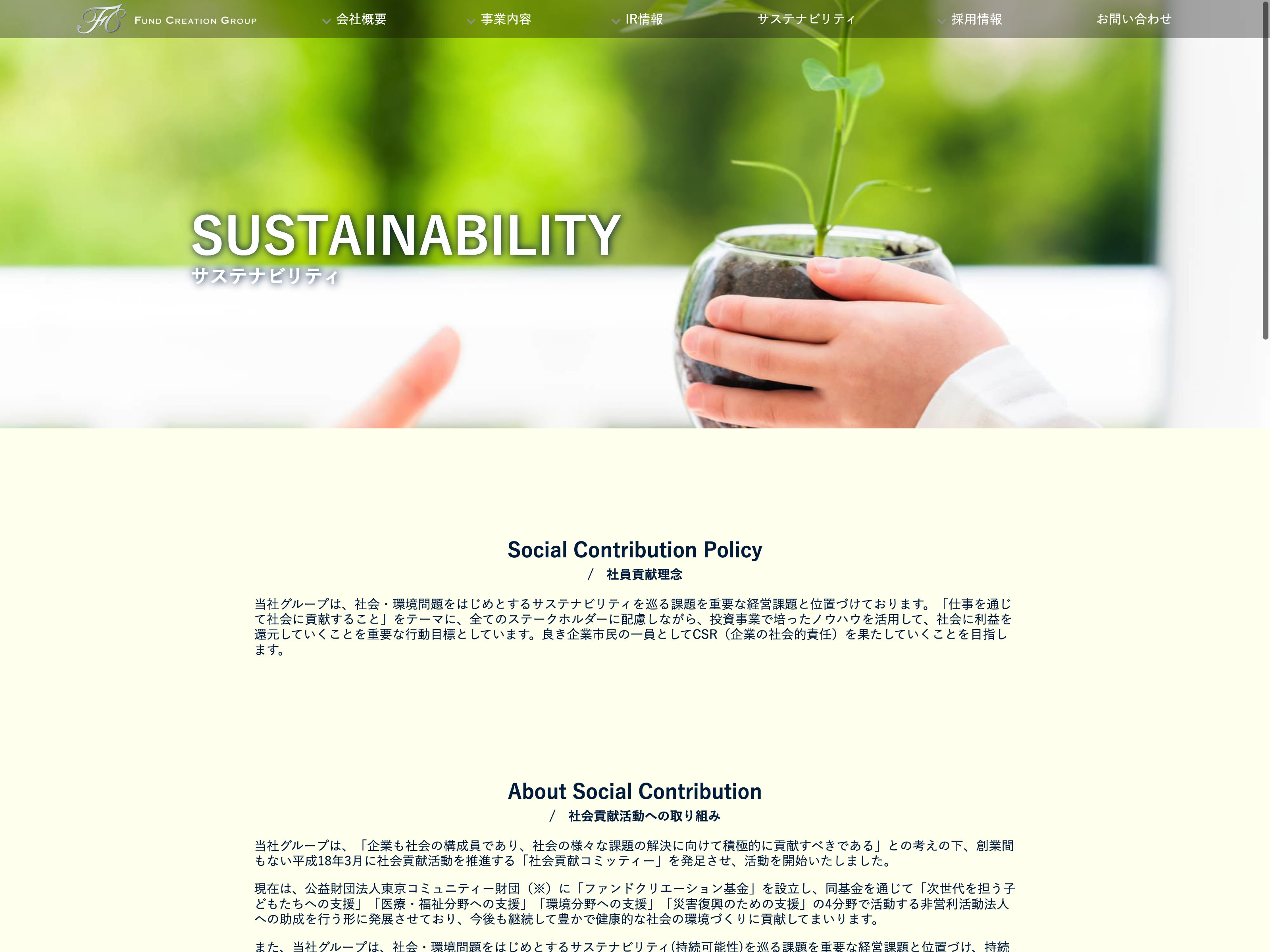 クリエイト Update:2022.10.31 カテゴリー:スタンダード 卸売業 サステナビリティ ニュース一覧 プライバシーポリシー 事業内容 免責注意事項 経営理念 詳細 Visit 詳細 Visit