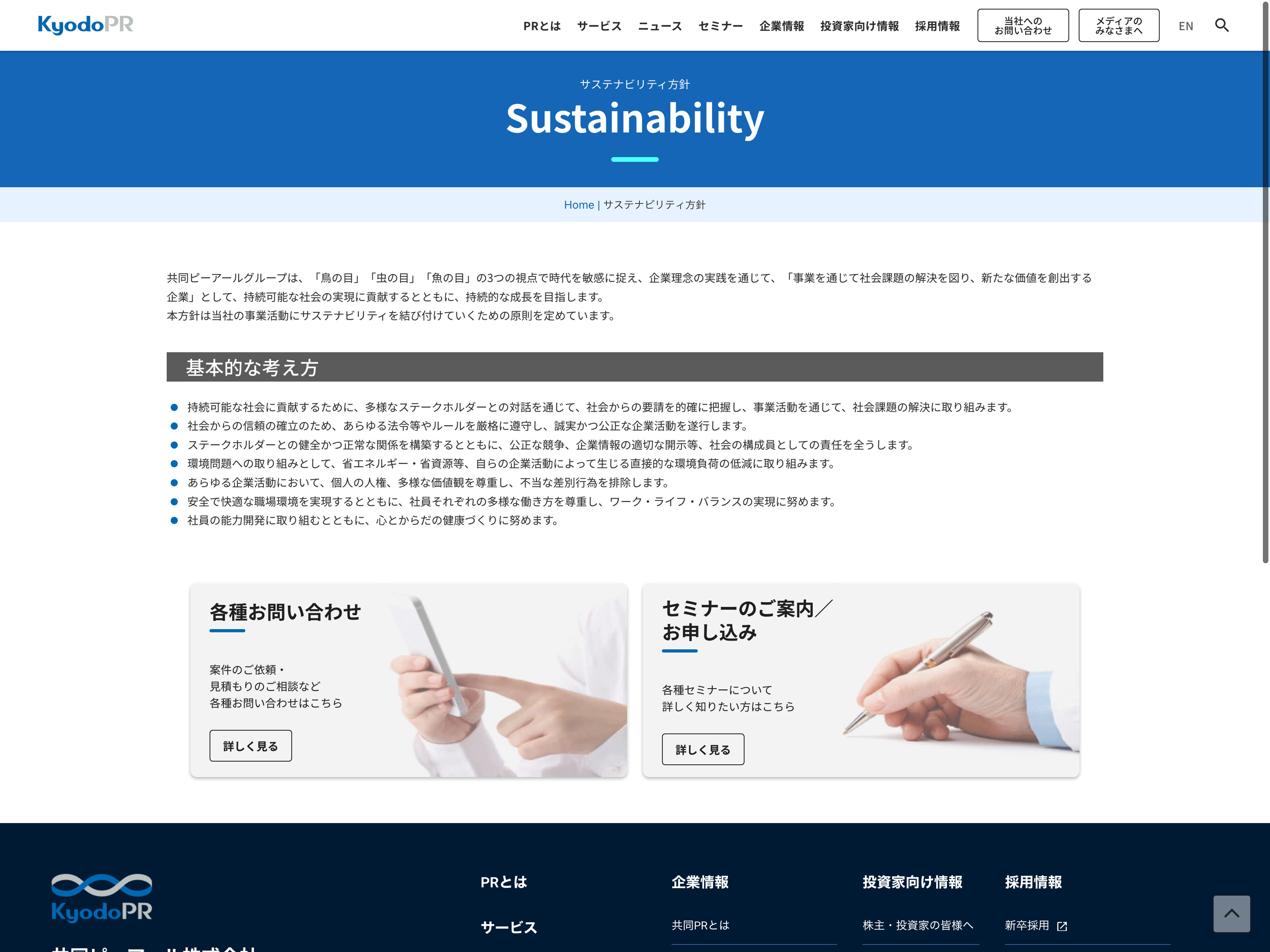 共同ピーアール Update:2022.10.31 カテゴリー:スタンダード サービス業 サステナビリティ ニュース一覧 プライバシーポリシー 免責注意事項 情報セキュリティ 有価証券報告書 沿革 経営理念 詳細 Visit 詳細 Visit