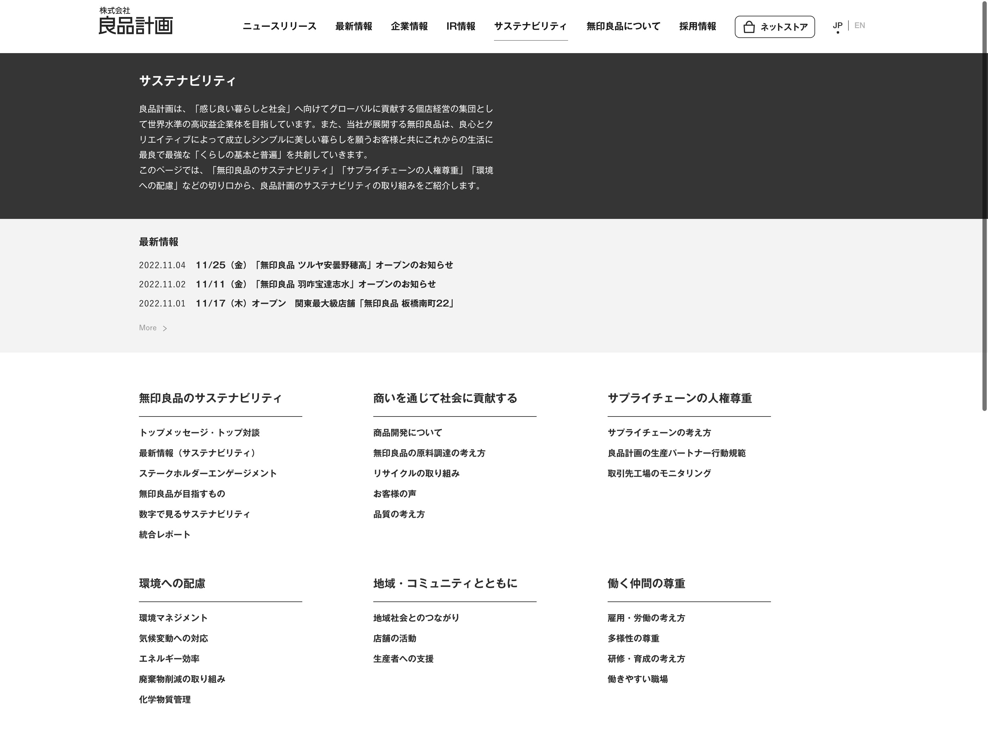 良品計画 Update:2022.10.31 カテゴリー:プライム 小売業 コンプライアンス サステナビリティ プライバシーポリシー 事業内容 免責注意事項 有価証券報告書 沿革 詳細 Visit 詳細 Visit