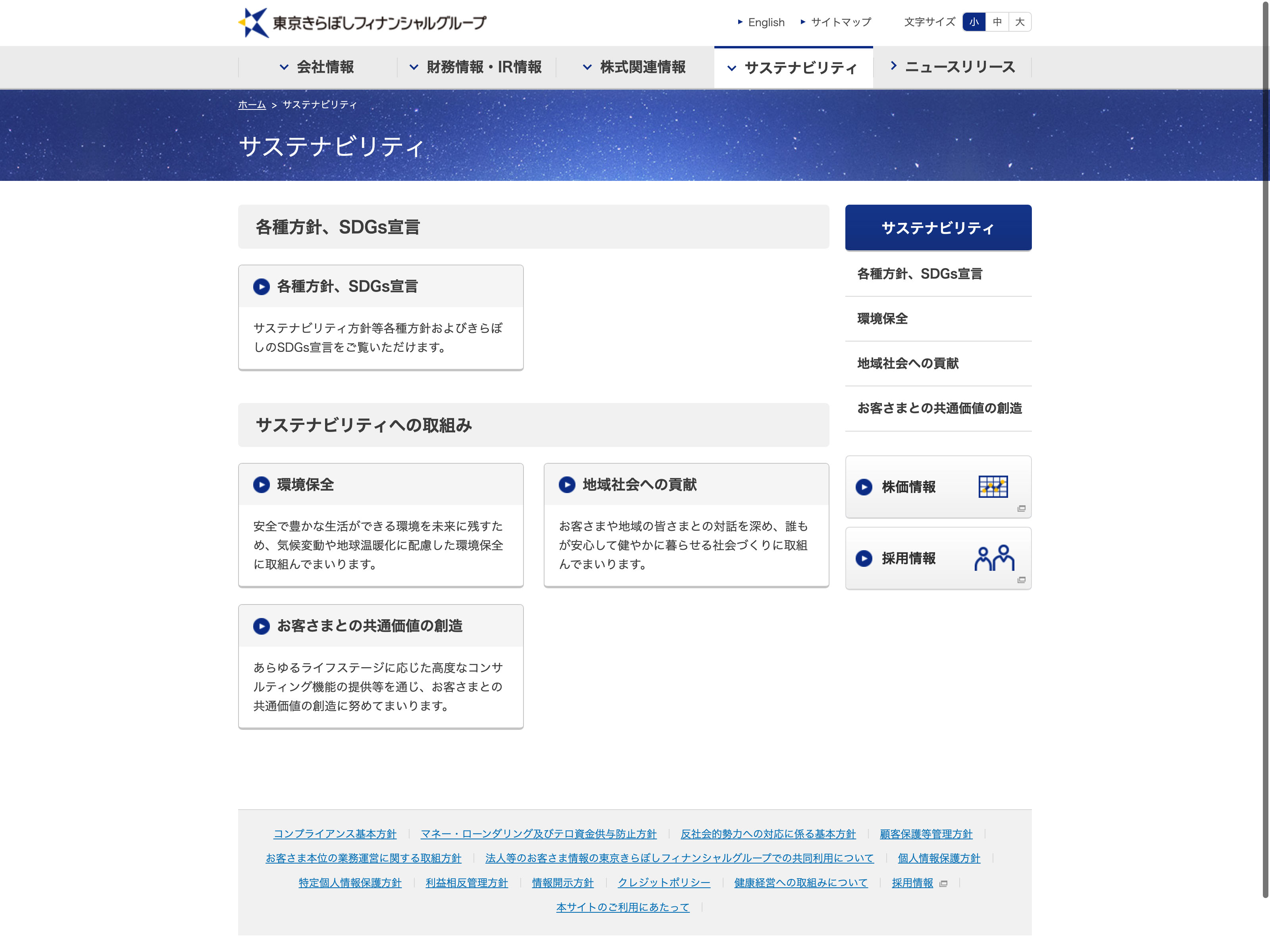 東京きらぼしフィナンシャルグループ Update:2022.10.31 カテゴリー:プライム 銀行業 コンプライアンス サステナビリティ ニュース一覧 プライバシーポリシー 有価証券報告書 沿革 経営理念 詳細 Visit 詳細 Visit