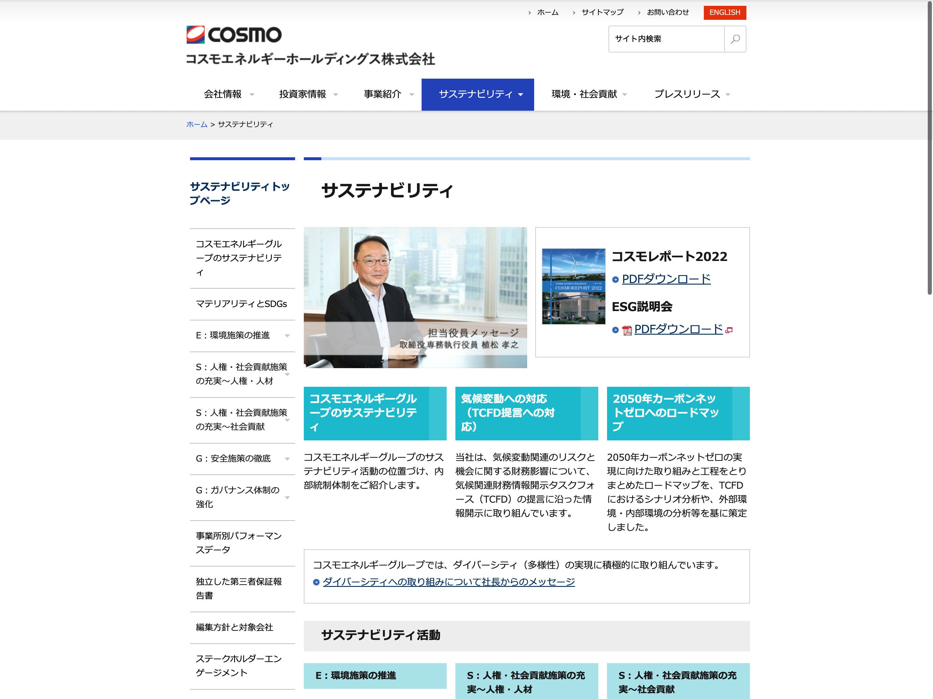 コスモエネルギーホールディングス Update:2022.10.31 カテゴリー:プライム 石油・石炭製品 サステナビリティ ビジョン プライバシーポリシー 事業内容 社長メッセージ 経営理念 詳細 Visit 詳細 Visit