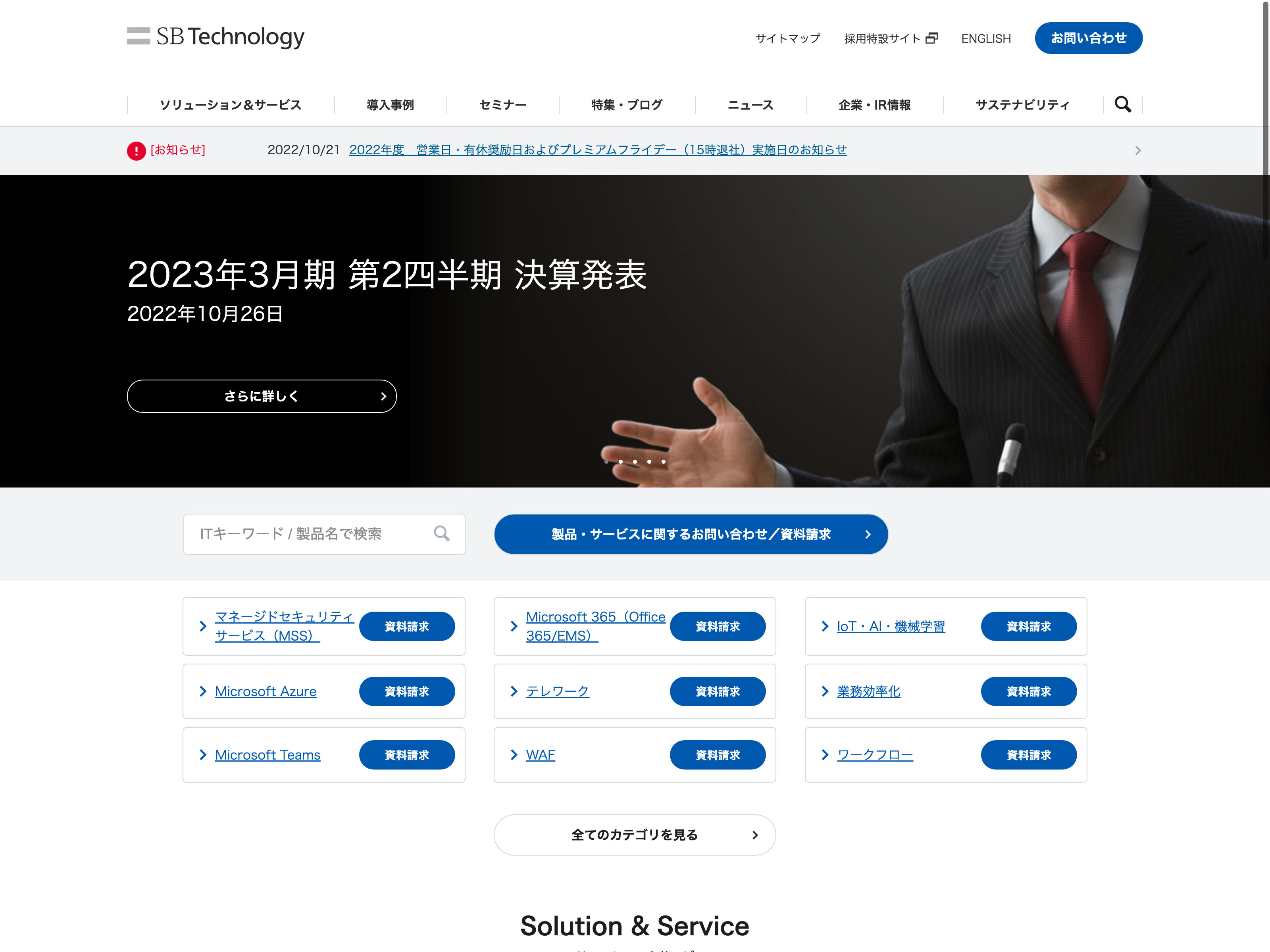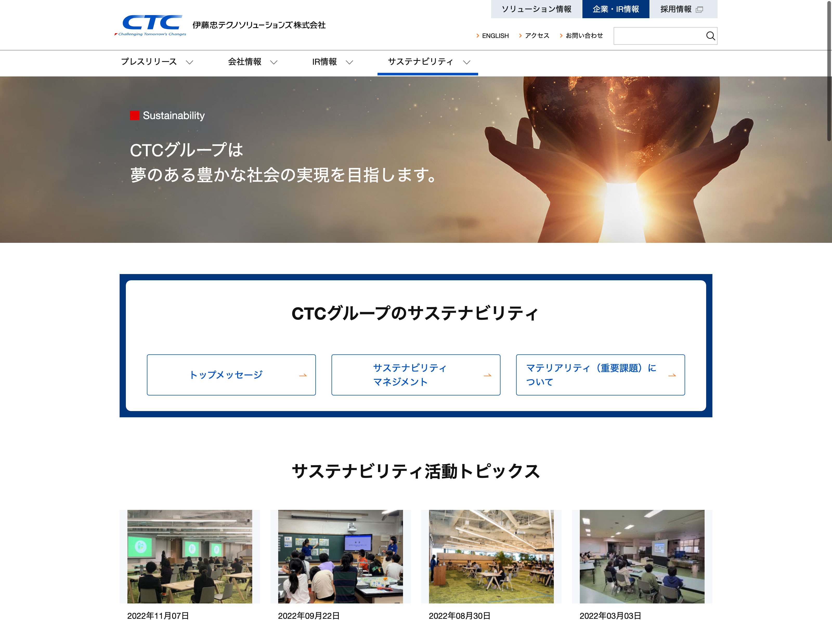 伊藤忠テクノソリューションズ Update:2022.10.31 カテゴリー:プライム 情報・通信業 サステナビリティ ニュース一覧 プライバシーポリシー 情報セキュリティ 詳細 Visit 詳細 Visit